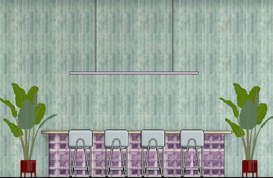 bar chairs are light blue colour floor is concrete