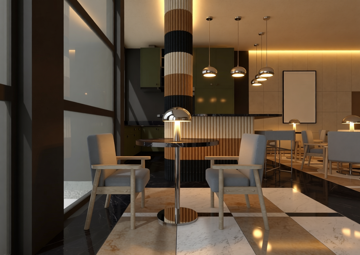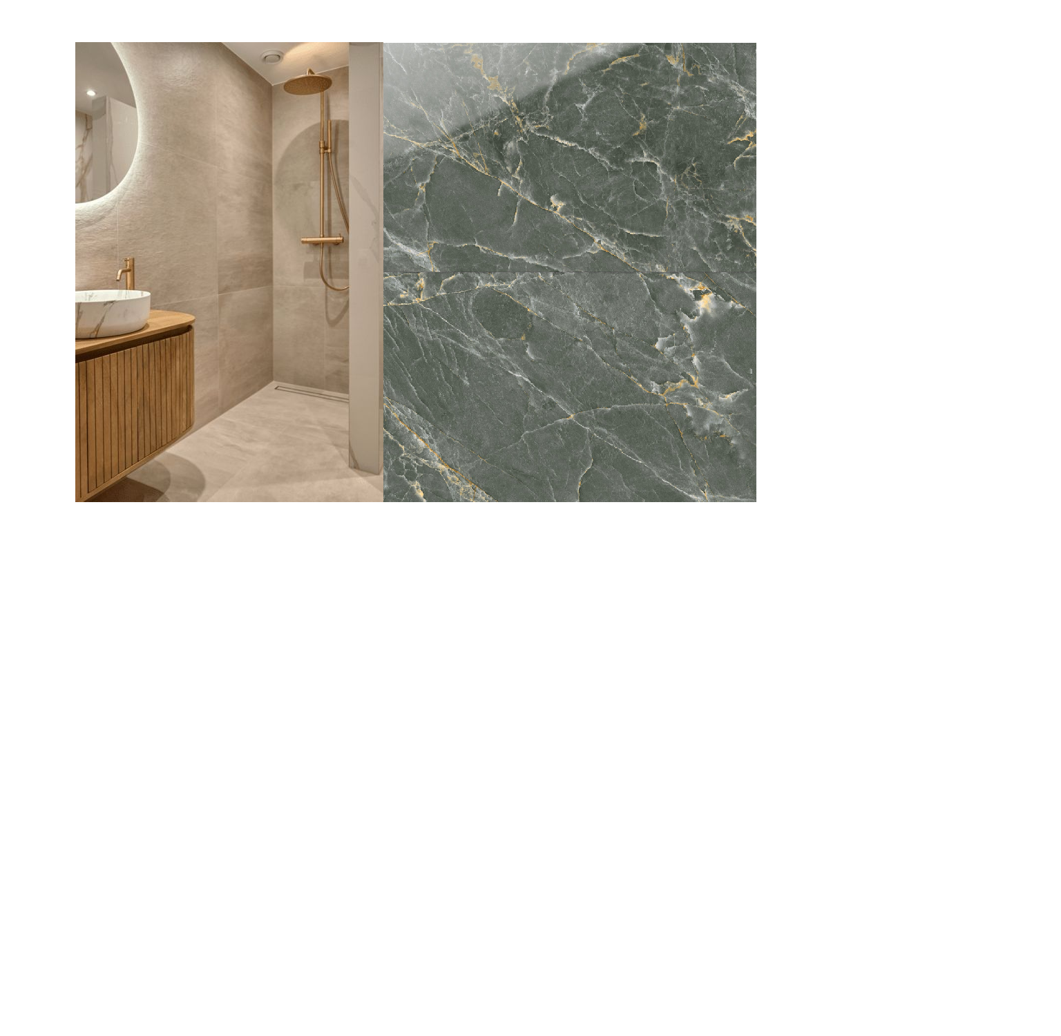exterior shot only the wall with the showerhead in green all the other walls in travertin tiles