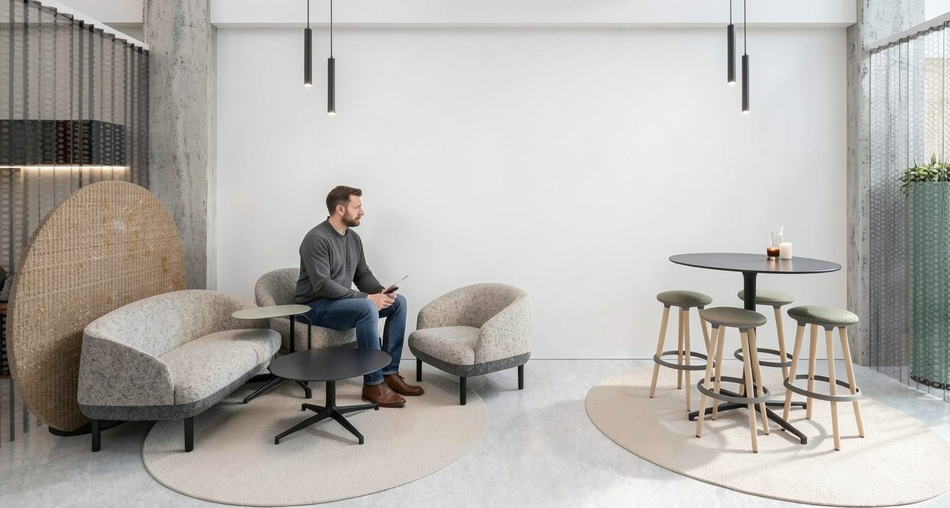add realism to this image and as for materials in the facade the concrete surface is all the same white solid color not rough its matte and in front of the windows dark color grey close to black metallic frame holding a thin metal grating grill panel and contemporary rust finished corten steel material dark bronze color generic only in the middle entrance gate and give a view in a warm sunset about serene atmosphere not many clouds