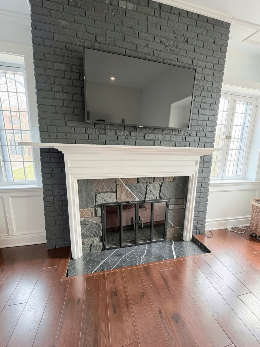 do not change anything about the image except remove the kitchen island stools the vase flowers on the kitchen island the side table next to the sofa and the knick knacks on the table