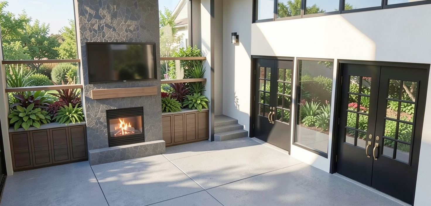 contemporary tropical courtyard house open central patio with skylight indoor garden with abundant vegetation large leafy tropical plants covering the ground completely replacing any stepping stones or hardscape paths seamless green garden clean modern lines dark grey stone tiles surrounding the garden light wood finishes black metal columns floating staircase with wooden steps soft natural lighting warm beige walls japandi style calm atmosphere architectural render photorealistic high detail 8k