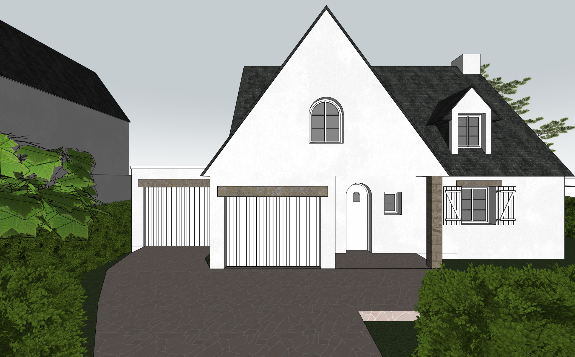 respect exactly architecture materials day light from left high background don t change colors doors and window in white floor in red stone
