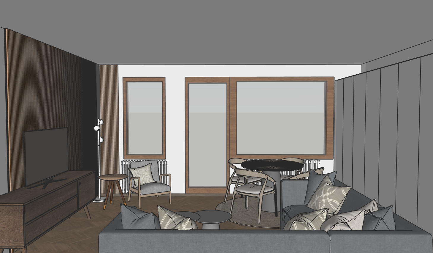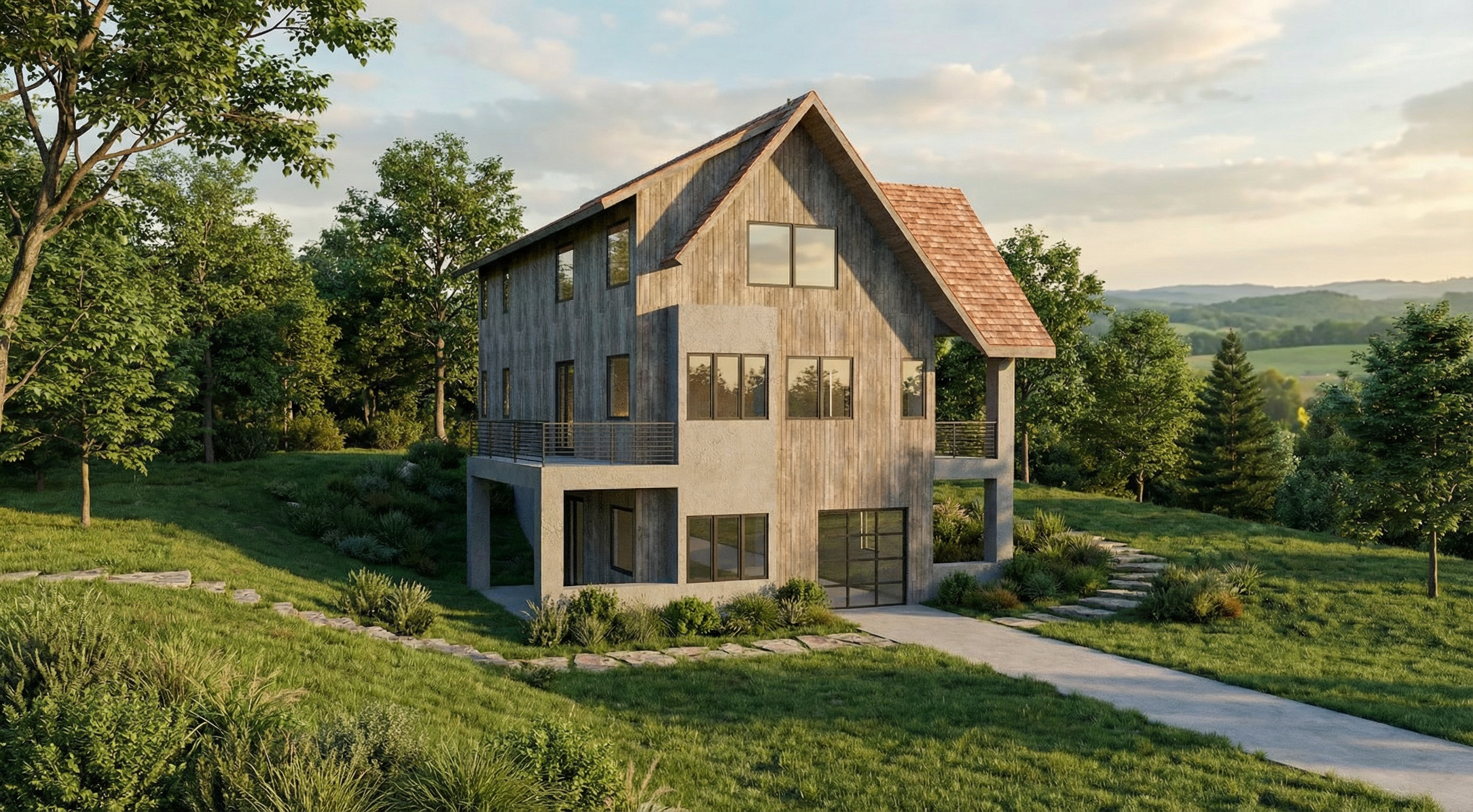 modern interior shot cupboard system white hintergrund a balcony und forest architecture