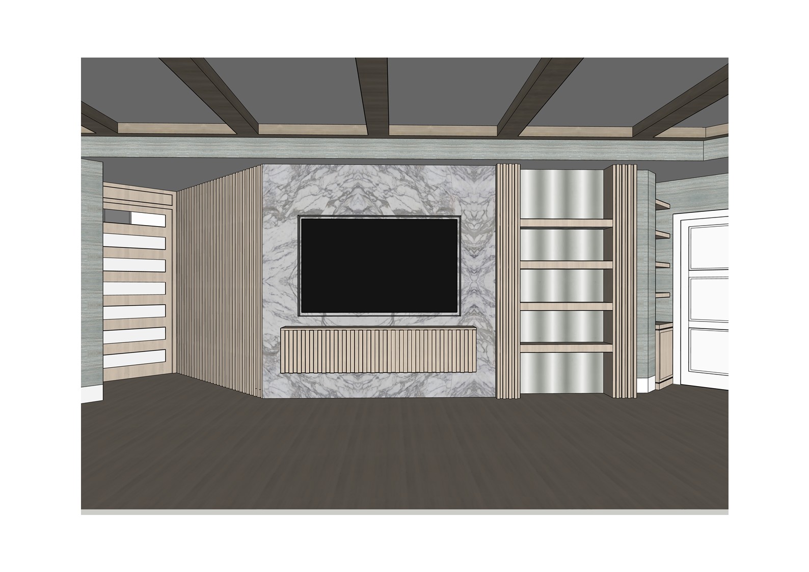 transform the provided elevation into a hyper realistic interior photograph that is indistinguishable from a real professionally shot interior design photograph this must read as a real space captured by a camera not a rendering not a visualization not architectural cg not concept art and not an illustration geometry lock non negotiable preserve the exact original geometry layout proportions ceiling details wall depths panel divisions openings doors cabinetry locations millwork dimensions built ins and circulation paths with zero architectural changes nothing may move scale simplify or be reinterpreted geometry must remain absolutely unchanged camera derivation critical derive the camera position height angle and framing strictly from the uploaded elevation eye level interior photography centered or naturally balanced composition 24 35mm interior lens feel no dramatic angles no stylized framing do not reuse or approximate camera framing from any previous image remove all drawing artifacts completely remove all linework cad edges drafting outlines diagrammatic shapes sketch artifacts nothing may appear outlined flat schematic or illustrative the elevation must be visually reinterpreted as a finished real interior photograph material realism rules wood if present smooth solid plank material extremely subtle restrained grain matte or soft satin finish only no graphic patterns no decorative striping no visual noise wood must absorb light gently never glossy or sharp fabric upholstery if present soft compression subtle seams gentle shadowing natural fabric texture no flat color blocks stone slabs if present light natural veining soft organic variation low contrast no symmetry no bold or busy patterns stone must feel heavy and grounded walls fine surface texture slight tonal variation never flat paint edge construction realism all edges corners joints and transitions must be softly broken and physically realistic no razor sharp corners no cgi perfect edges slight construction tolerances only everything must read as fabricated installed and dimensional lighting photographic behavior lighting must behave like real high end interior photography natural daylight only unless otherwise specified realistic light bounce gentle shadow falloff uneven exposure distribution subtle brightness variation across surfaces avoid studio lighting uniform illumination over clean exposure global illumination look slight softness is preferred over sharpness camera image imperfections very important introduce subtle photographic characteristics gentle lens softness micro exposure variation natural contrast roll off mild atmospheric depth primary plane sharp background slightly softer the image must feel captured not generated absolute constraints no creative interpretation no stylization no exaggeration no added or removed elements any deviation from the original elevation geometry or intent is unacceptable negative prompt always include architectural rendering 3d visualization cgi unreal engine octane vray sketchup look flat textures graphic lines outlined edges over sharpened studio lighting concept art illustration ai look plastic materials glossy wood high contrast grain perfect symmetry keep design as shown in the picture keep the design as it is in image light cabinets are white and brown cabinets are white oak keep design in the image as it is including materials