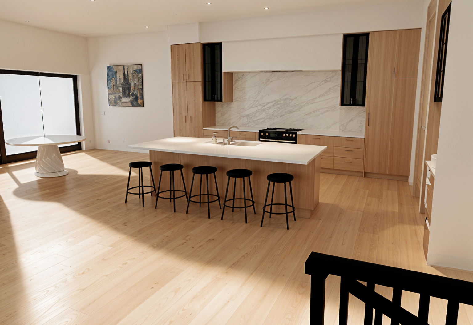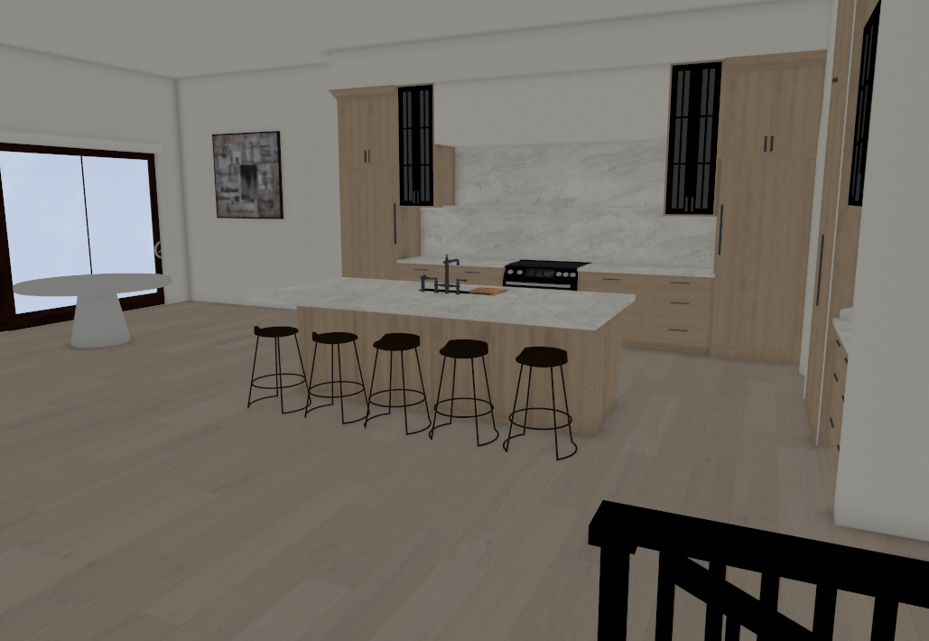 white oak cabinets add nature outside windows hyper realistic keep materials and design details the exact same as photo