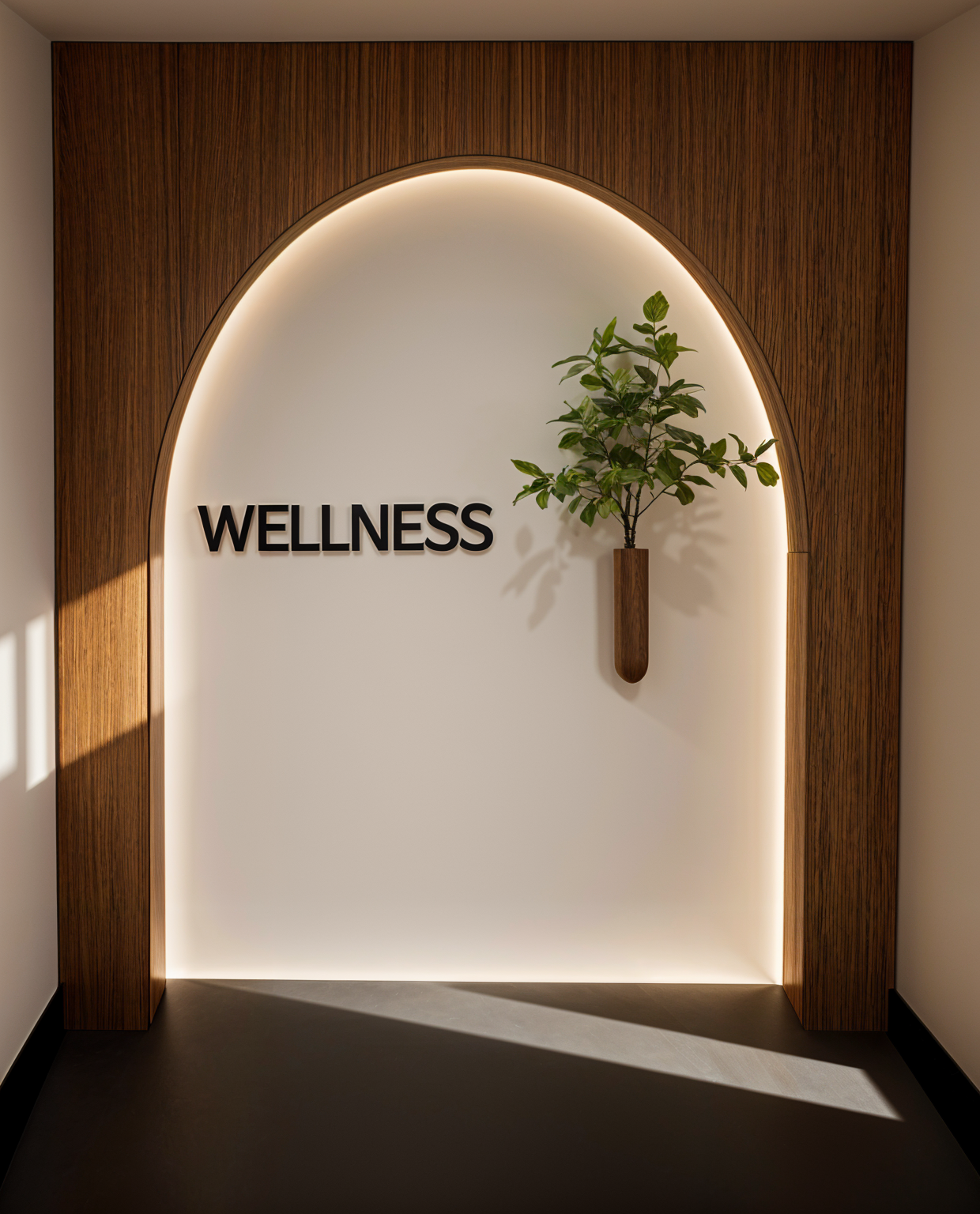 backlit behind arch and letters natural lighting put backlighting behind letters make wall vase an antique ribbed gold texture make realistic better lighting no shadows