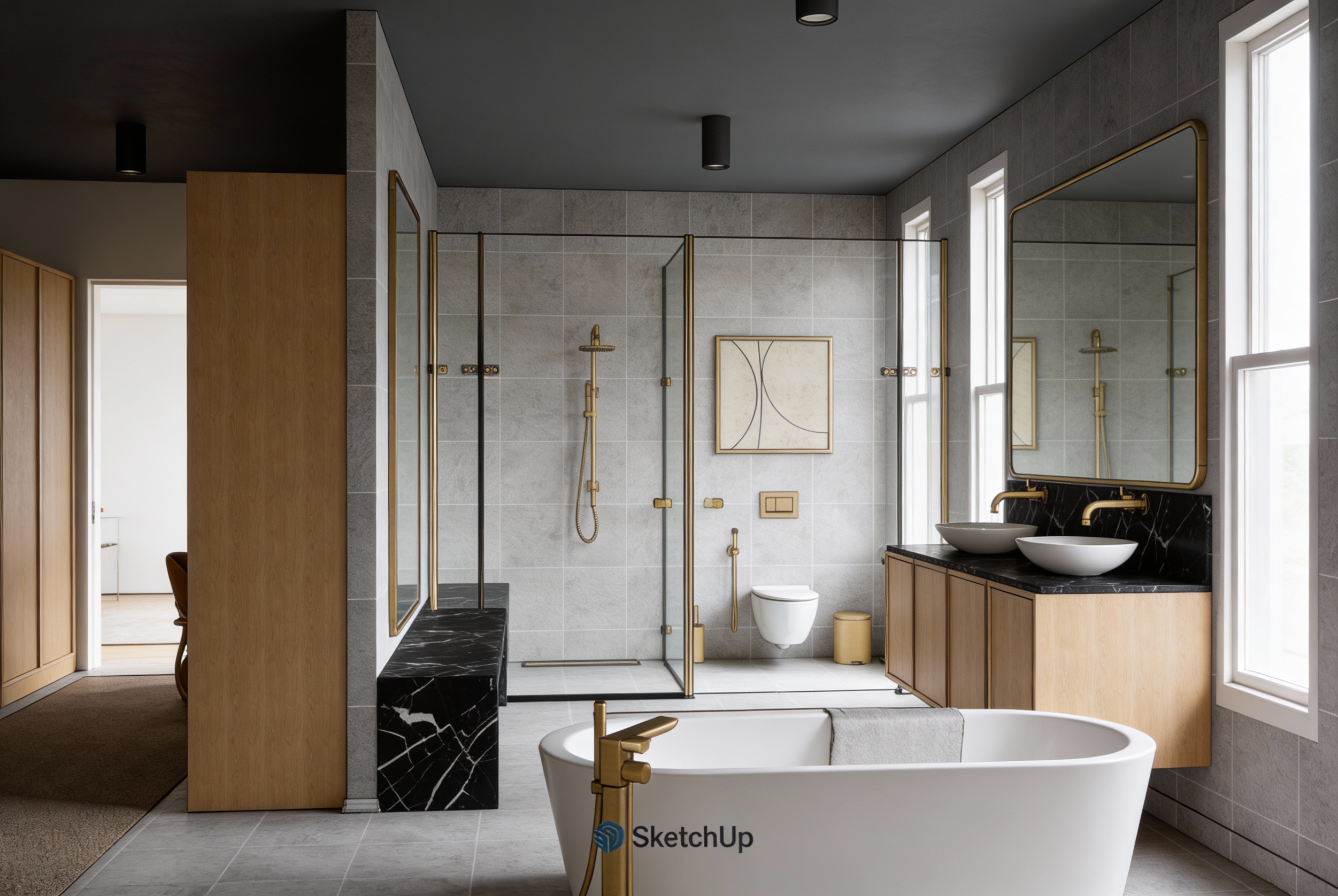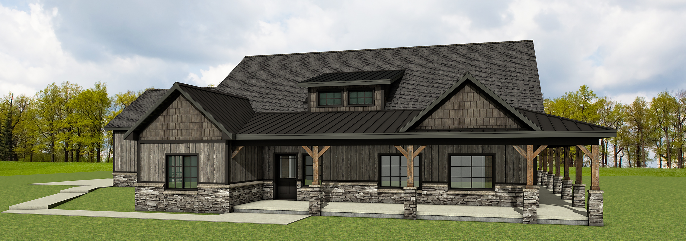 add photo realistic landscaping and background keep all colors and materials of the provided structure