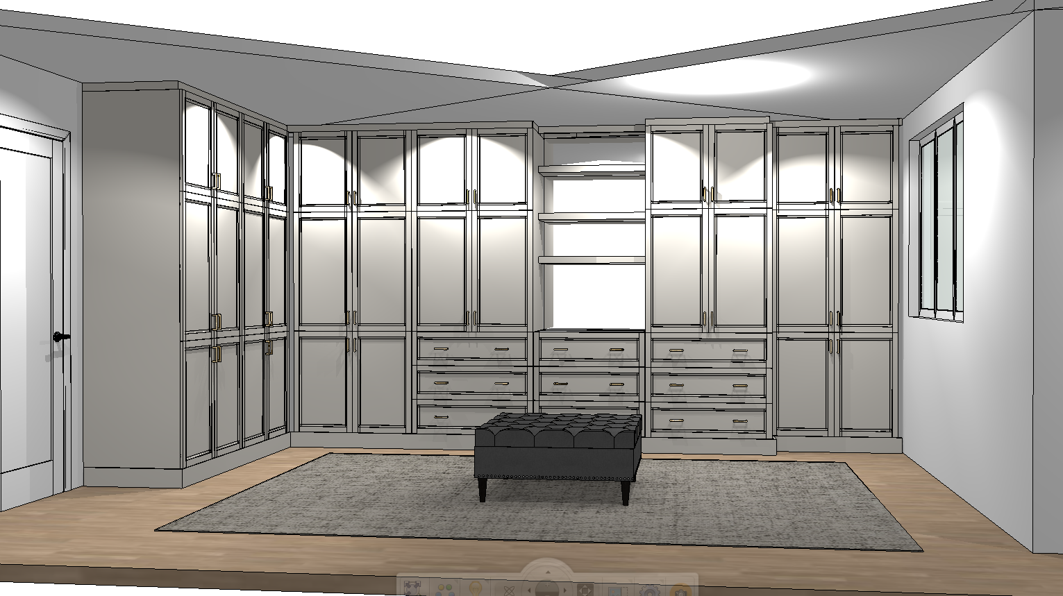 make look realisitc add decor on shelves make ottoman larger and add a semi flush light over the ottoman add drapery beside the window in a soft greige linen fabric