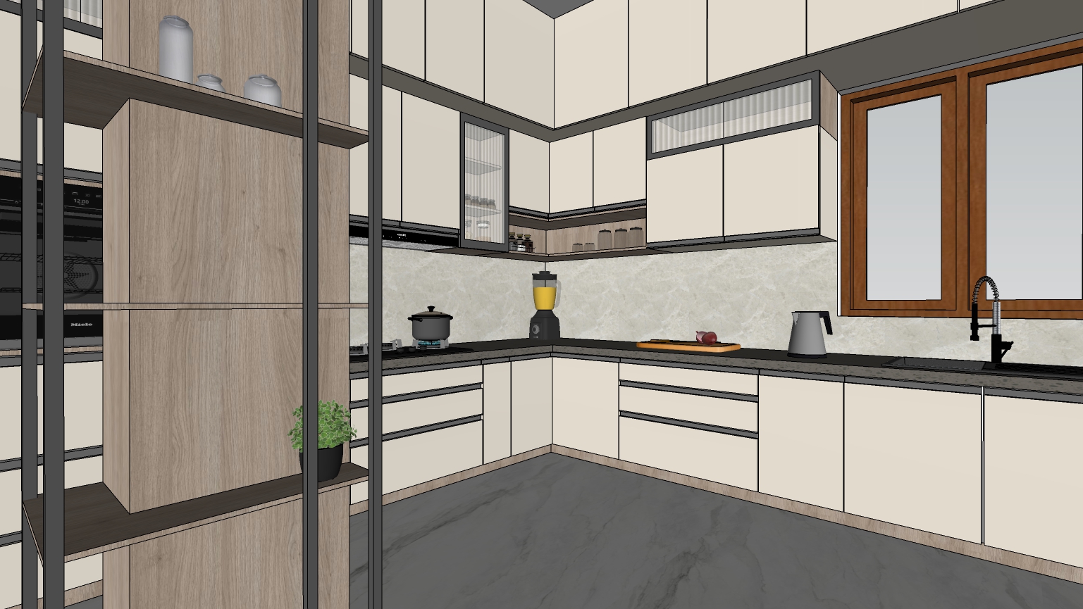generate a high quality realistic render of a kitchen with white acrylic glass shutters providde under cabinet lights and add lights in the skirting provide white marble flooring