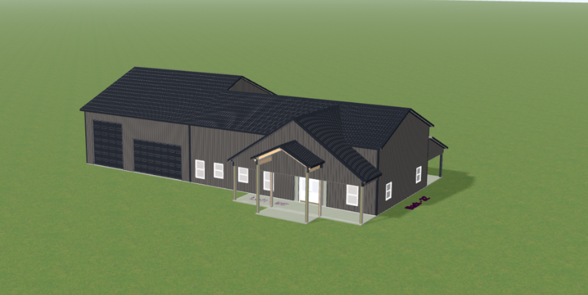 can you make this look more realistic as if taken by a camera add a really nice swimming pool with a waterfall have a family in the pool and a man mowing the lawn