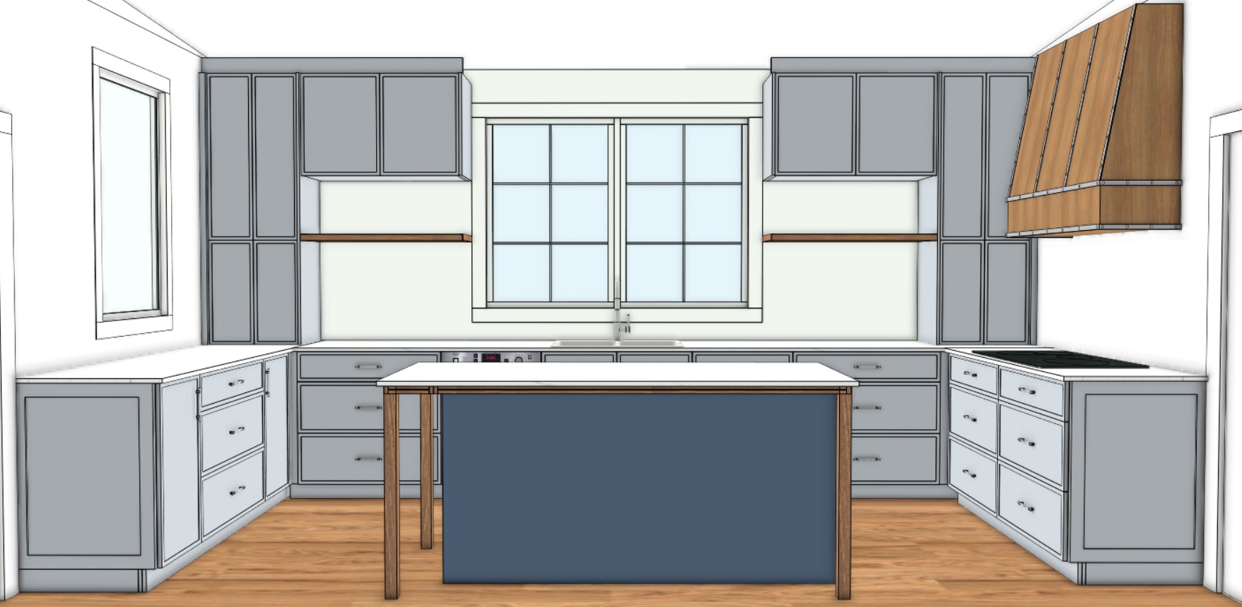 add natural light in the space kitchen decor someone standing at the island put 3 stools around the island bench and add white vertical wall panelling to exposed walls