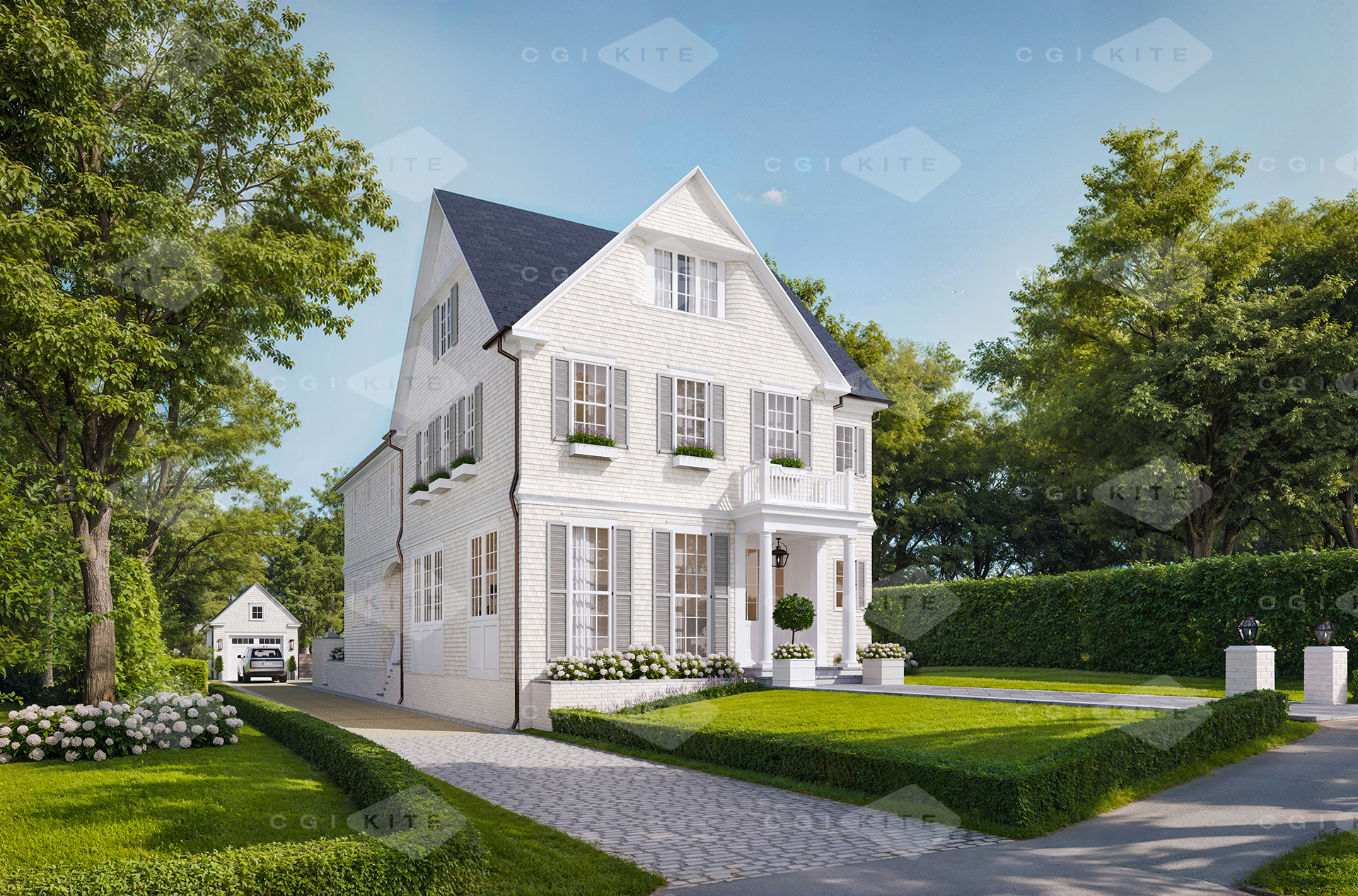 remove the cgi kite logos and brighten the left side of the house
