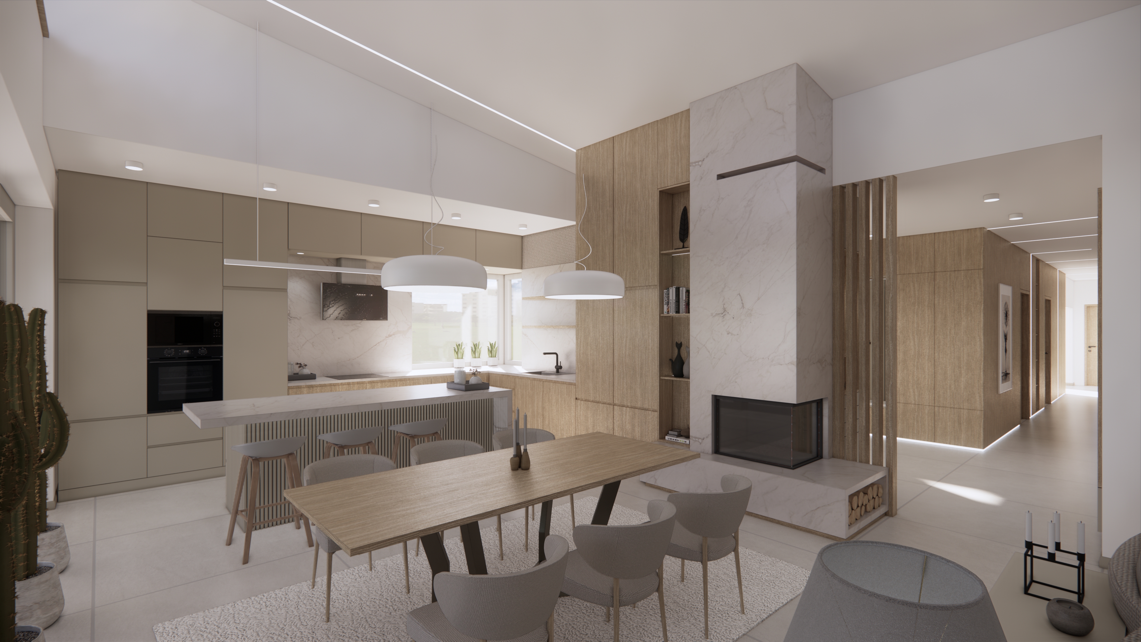 render a modern dental clinic interior featuring a sleek dental chair in a soft pastel green with crisp white accents cabinets are a light oak wood and counters are a smooth pale beige the back wall is a soothing mint green the air conditioning unit is a muted silver while the walls are a calm creamy off white the flooring is a polished gray concrete adding a touch of industrial chic create an atmosphere of calm and cleanliness with diffused soft lighting let the fire burn in the fireplace