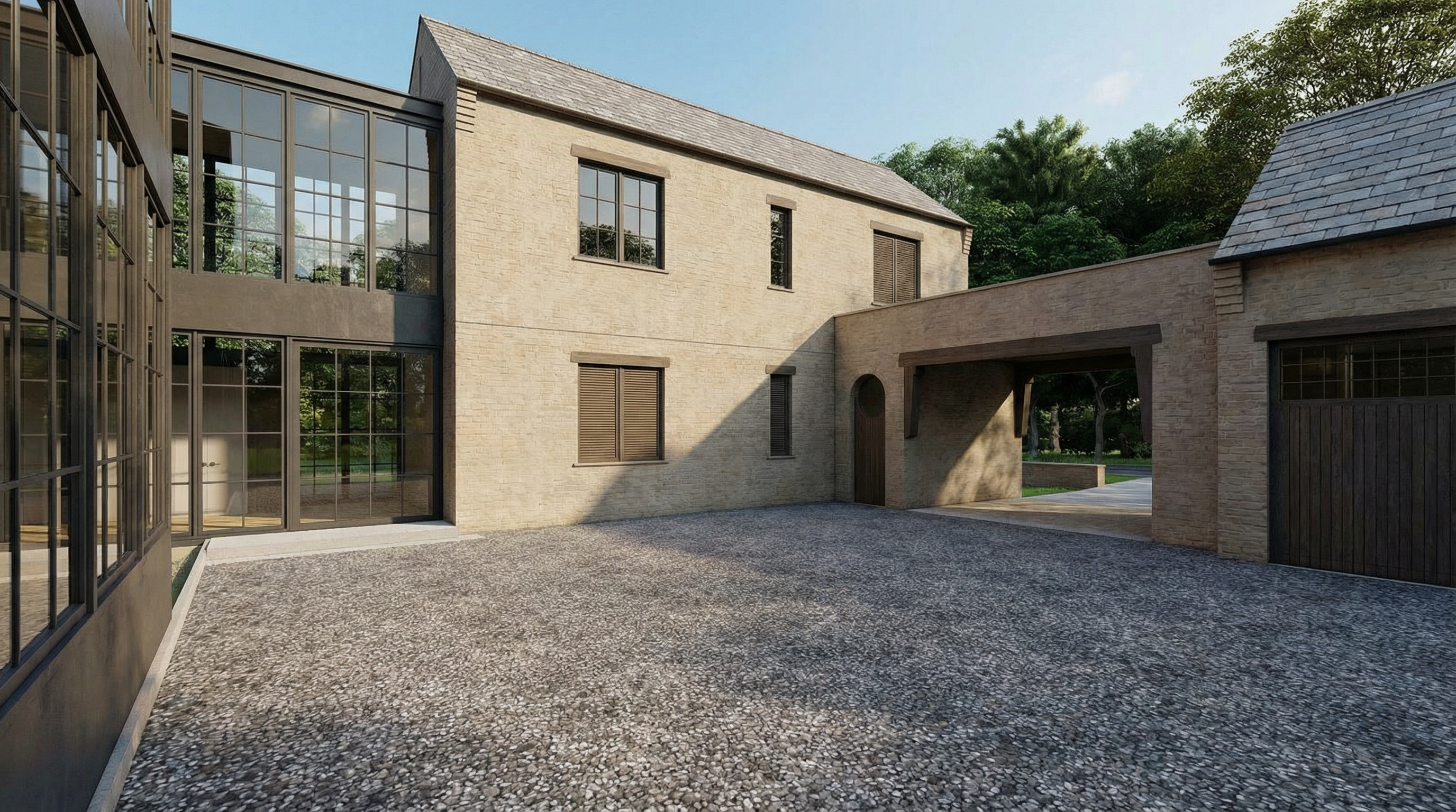 ultra realistic image show people cars and a cool ambiance first floor to be am elegant restaurant with tables outside day view with people sting outside with a well landscape outdoor seating area