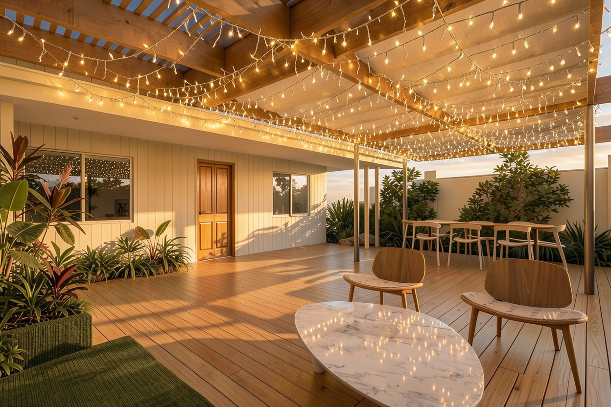 add few trees in background and vegetation for context make house look lived in give me a sunsety 3 4 p m vibe