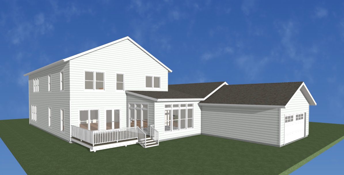 put this house in a heavily wood neighborhood with a road on the nearer side of the garage
