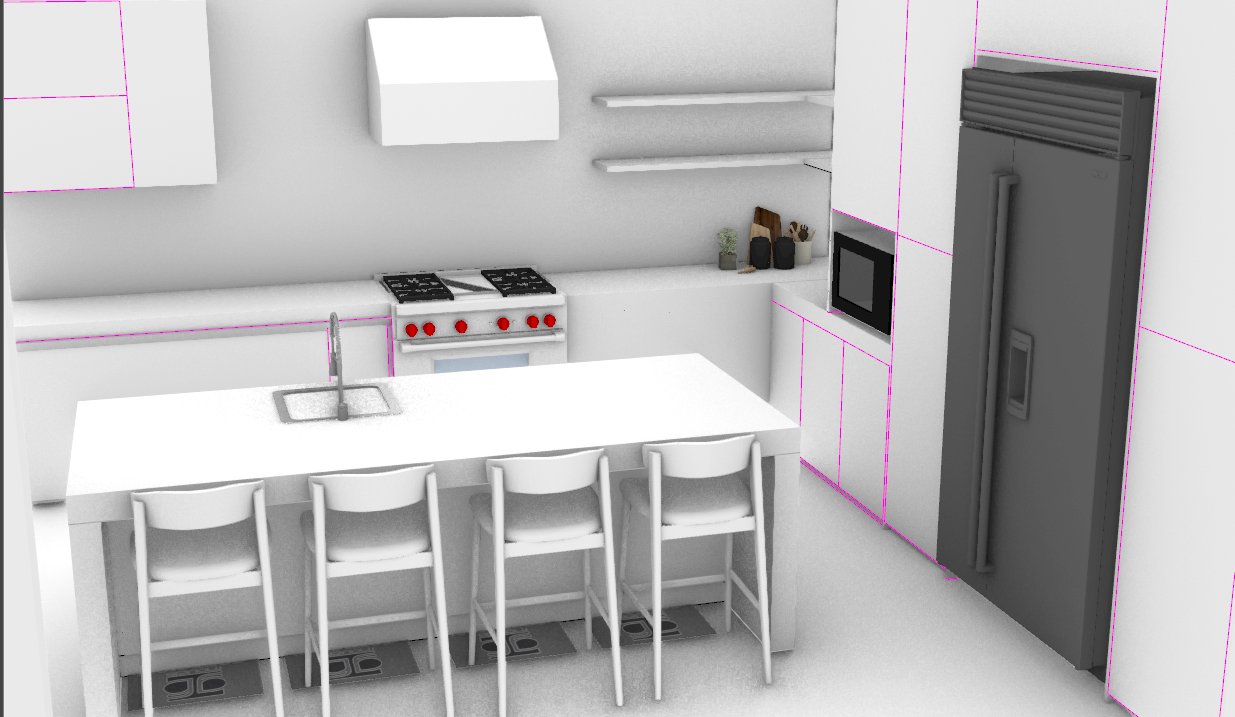 contemporary interior shot maintain the volumetry i gave you and add a beige color to the walls and for the carpintery like the drawers make them with a warm toned wood and add a beige warm toned stone on top a little darker the wood pls and change the door for a refrigirator and the window is a microwave architecture