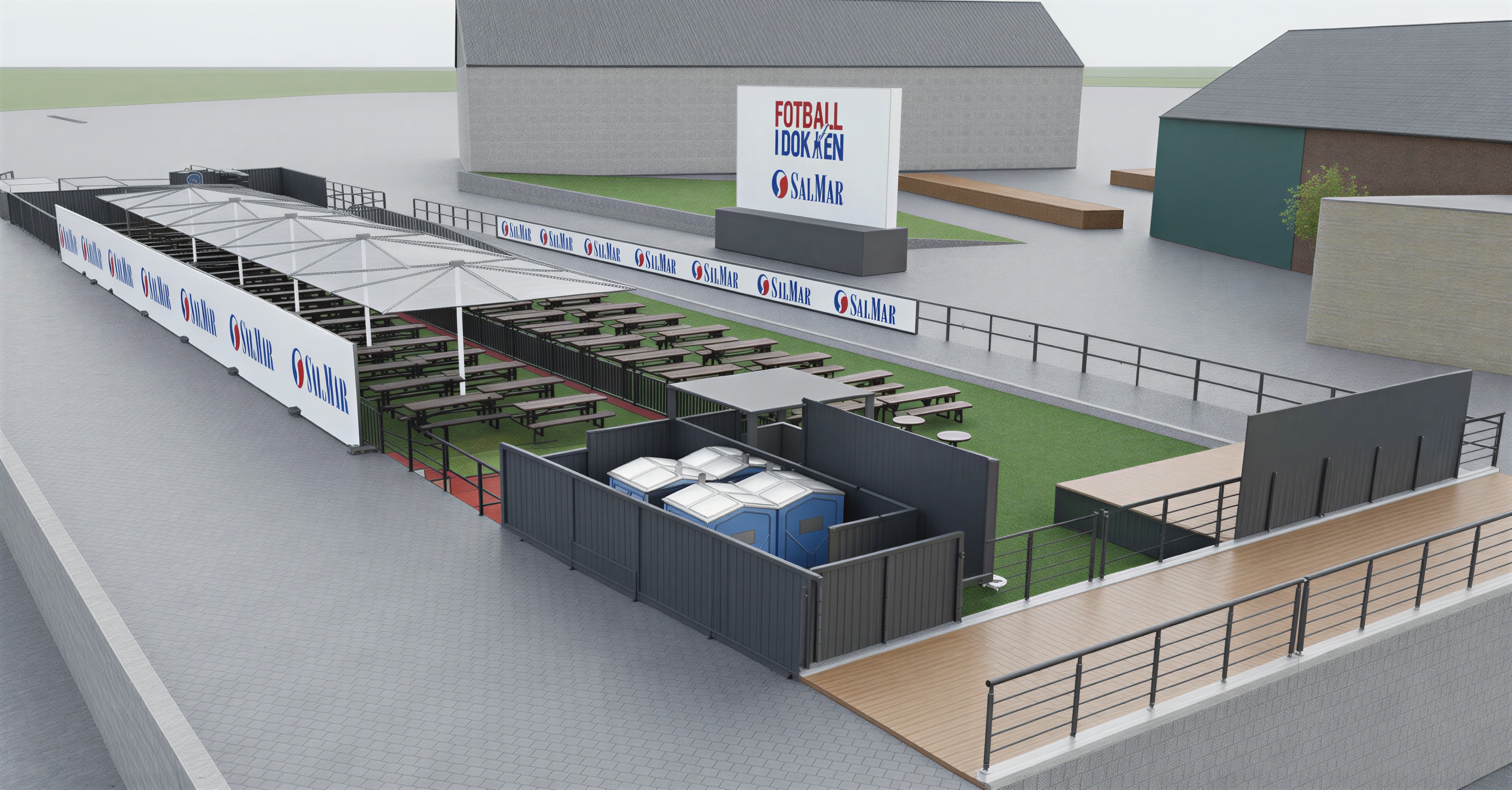 remove the salmar logos and make a soccer match on the big screen white screen in photo