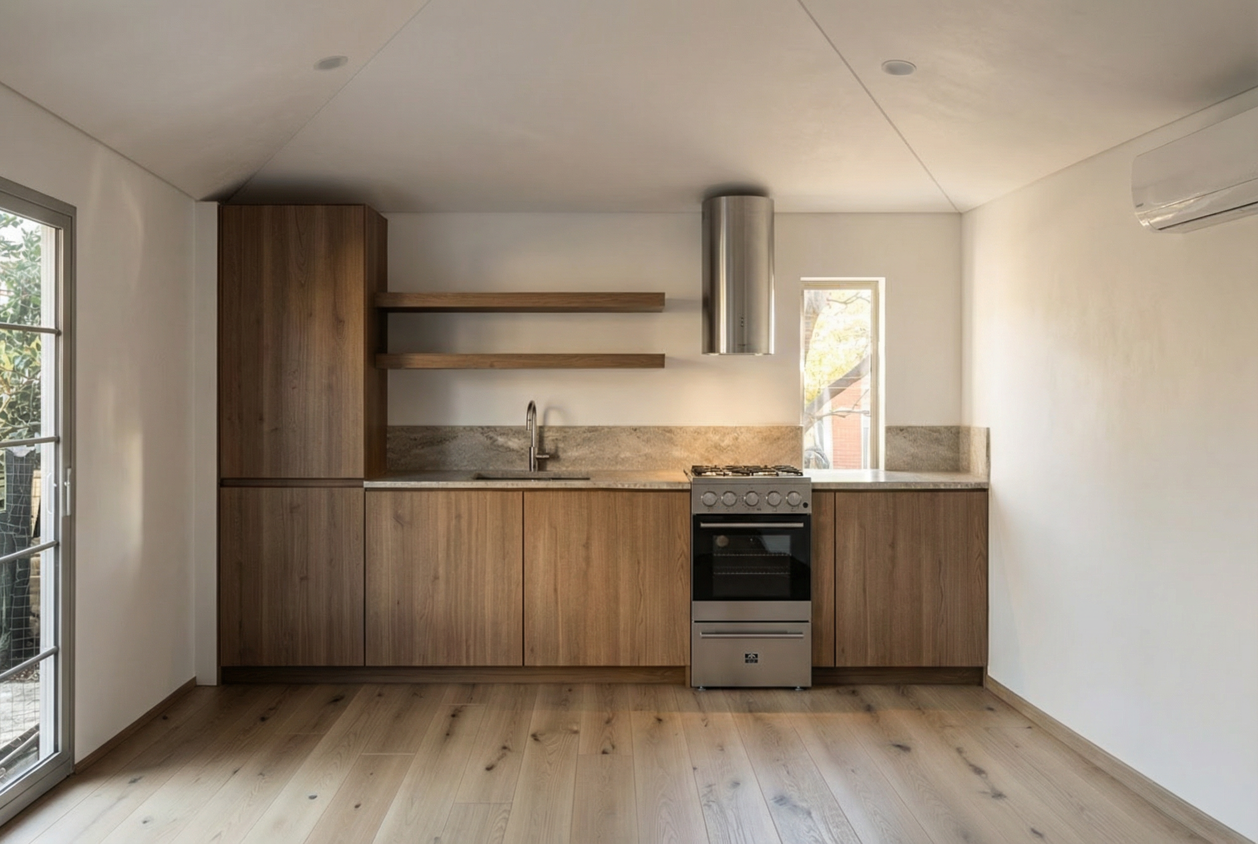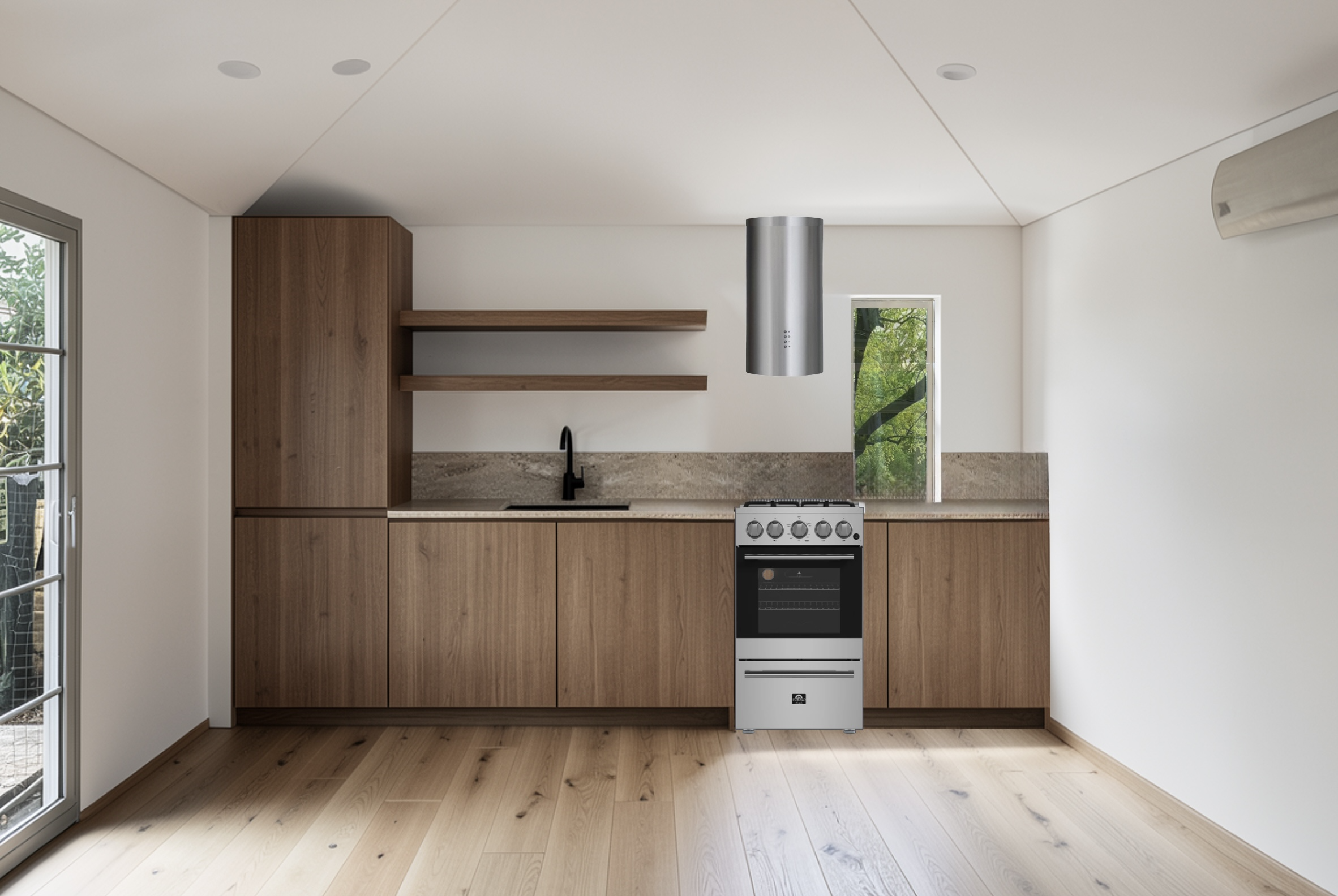 make counters beige grey stone and faucet black