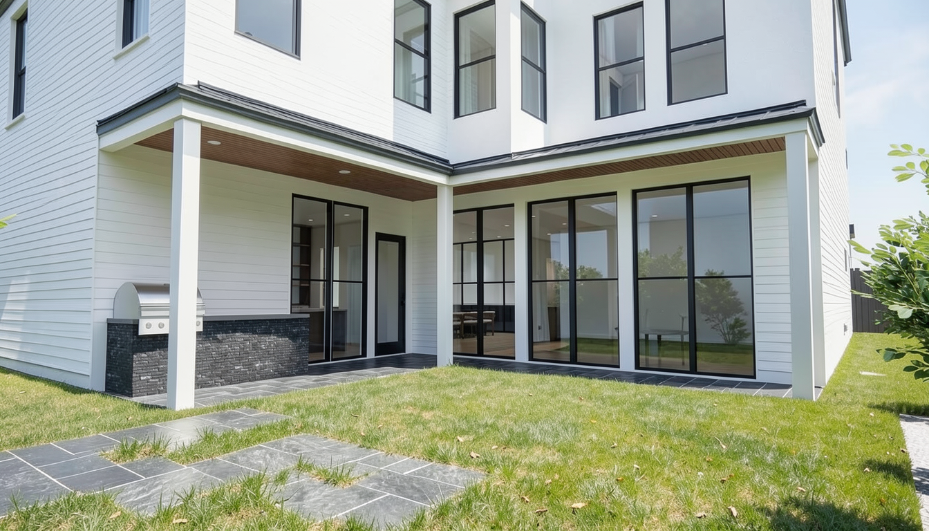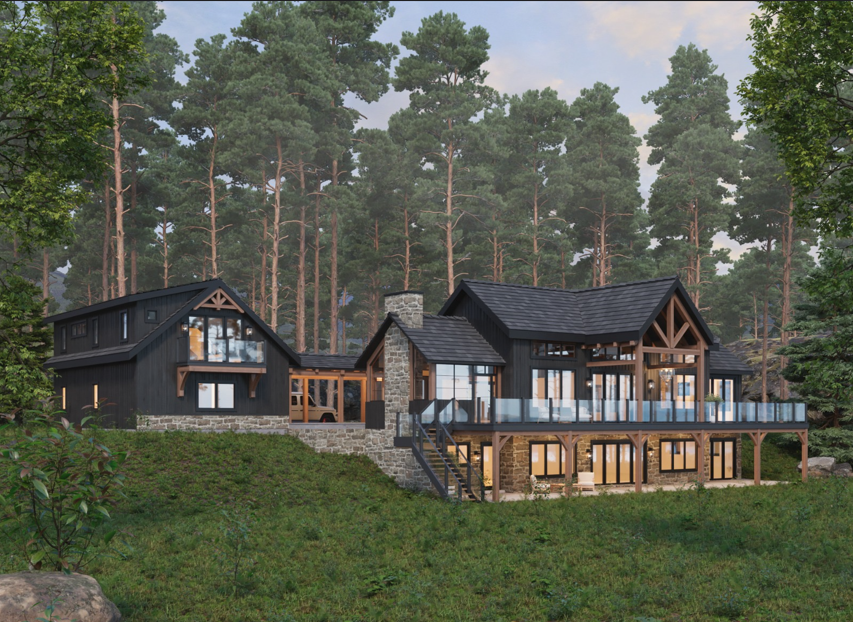 take away tree above chimney change cedar shake siding to horizontal siding make the building look more modern