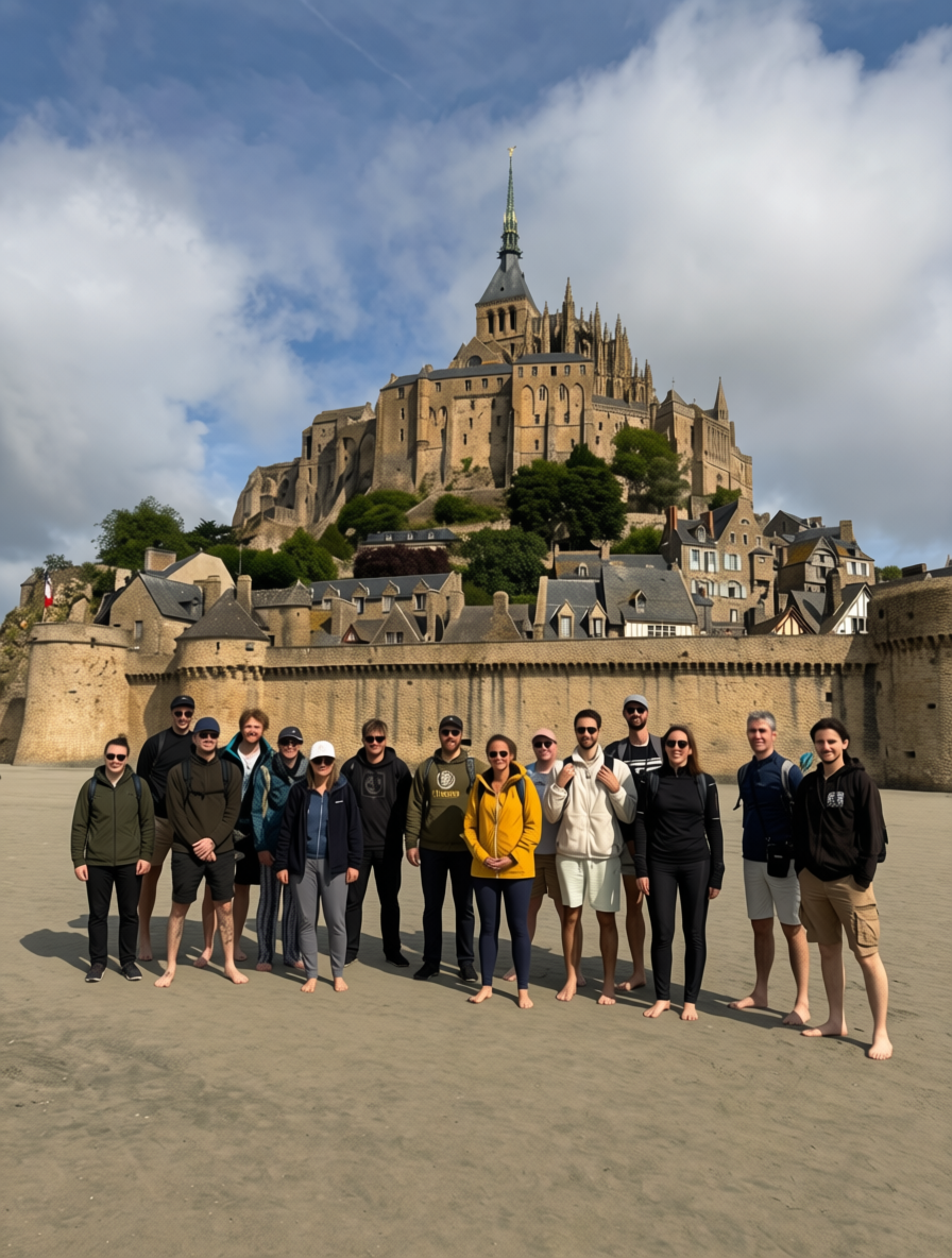 keep the main image as it is do not change the camera angle add a zinc clad rooftop extension to the 3 storey red brick building on the left keeping as much red brick as possible add a shadow gap between the zinc extension and the top of the red brick building below the size of the extension is shown in bright green for guidance add only 4 new windows to the clear areas inside the bright green colour add three windows on the right side of the zinc extension and one window on the left side of the zinc extension the glass used for the new windows should be dark grey the metal cladding colour is bronze grey with a vertical standing seam with sun reflection and shadows do not remove the two storey red brick building from the foreground on the left and do not alter the building below the extension clean up the image by removing the black wireframe lines shown on the left