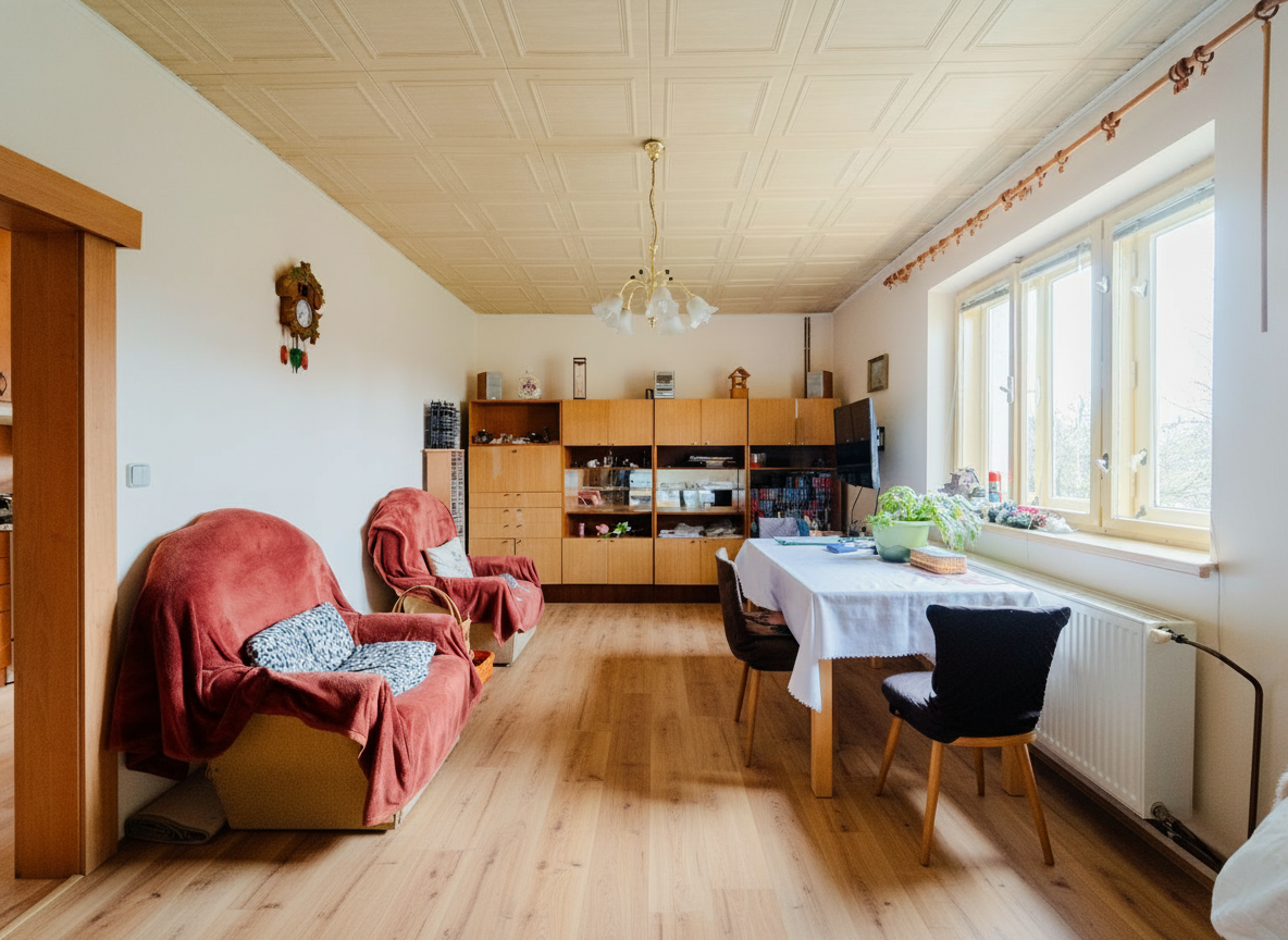 remove the upper ceiling above main ceiling feature retain everything else including studio lighting style