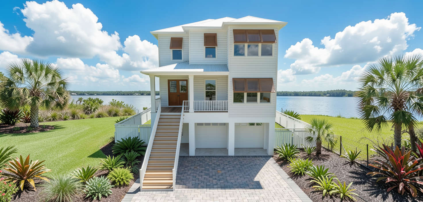 realistic image white painted panels on upper walls with trim add rug under table colorful upholstery on furniture add books to shelves decorative mantel and fire in the fire place add modern hanging light fixture add back columns with low gothic arch between them only add flowers in a vase on the table only add gothic arch between columns and add painted panel at ceiling in living room only remove window in stairwell