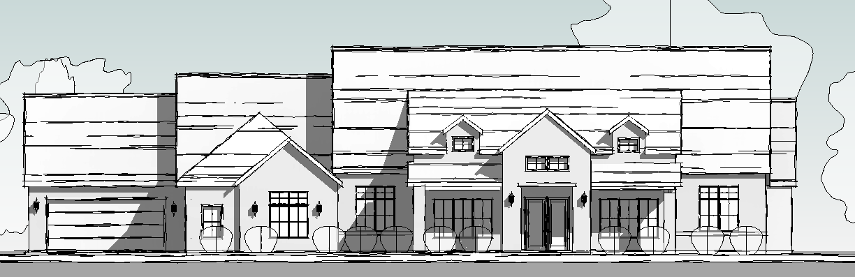 elegant trinational elevations cream color brick bronze windows brick columns weather wood shingles well landscaped front porch over castd day