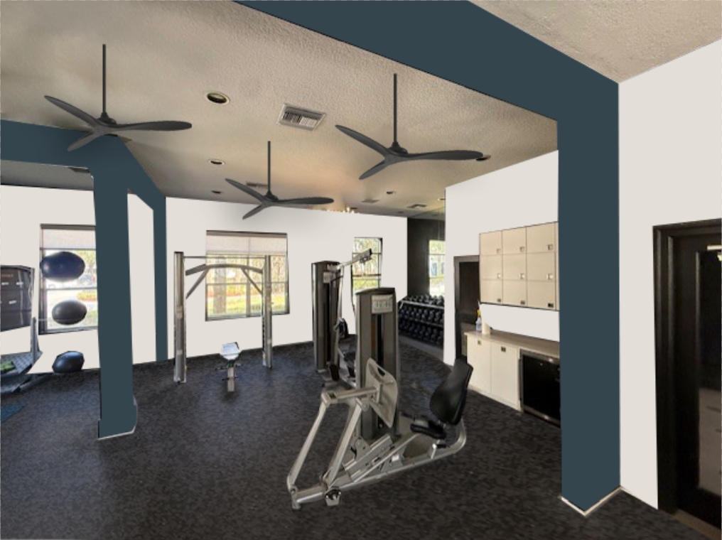 render this gym as is the blue paint is gale force sw 7605 and the walls are sw 7028 incredible white