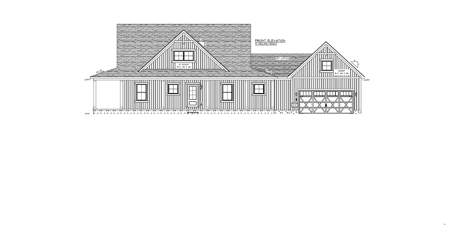 make as photorealistic as possible while keeping textures the same as selection professional landscaping in a lightly wooded scene with good lighting white siding black shingle roof black windows white garage door to match plan black front door the side of the porch is open there is no house behind it