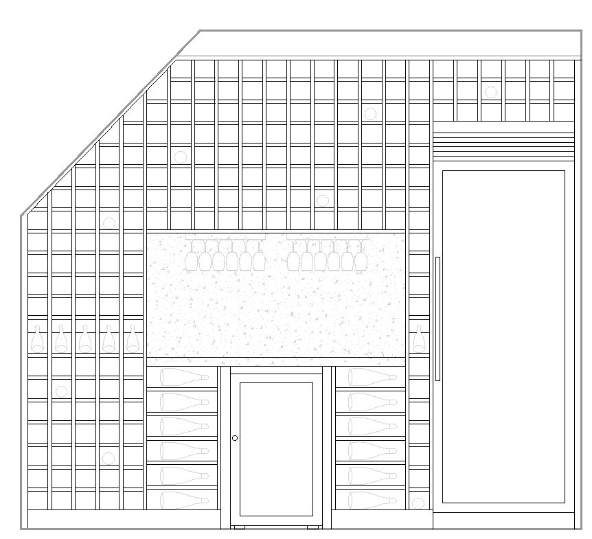 render this wine room with dark wood taj mahal countertops taj mahal backsplash lighting in the wine storage tile floors architecture