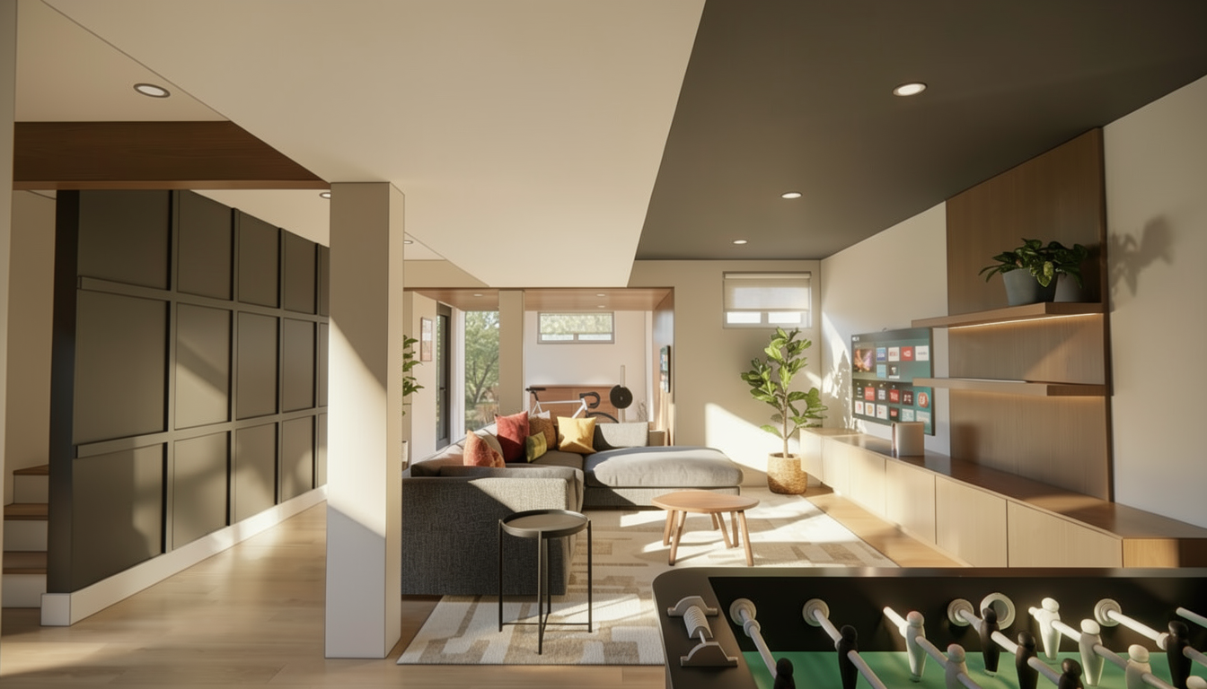 a transitional home with light neutral 6 hardi lap siding a light colored metal roof no masonry gable ends are also lap siding paver driveway maintain model accuracy add depth ensure windows are accurate add some trees and plants maintain garage doors located in texas hill country ensure window proportion garage trim accuracy no masonry in neighborhood on large lot dont show neighbors add miata to driveway