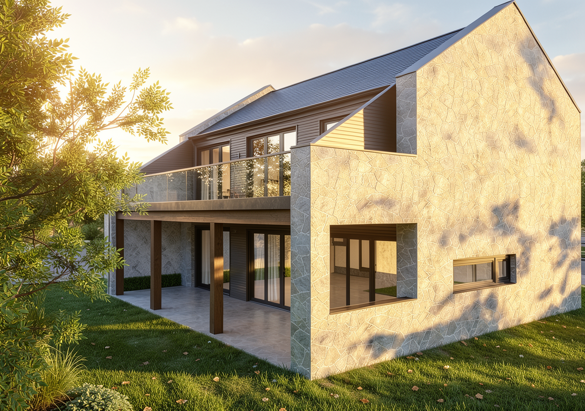 modernist exterior shot exterior shot varied light and dark woods mountain modern materials winter scene in dense pine forest preserve grade architecture architecture