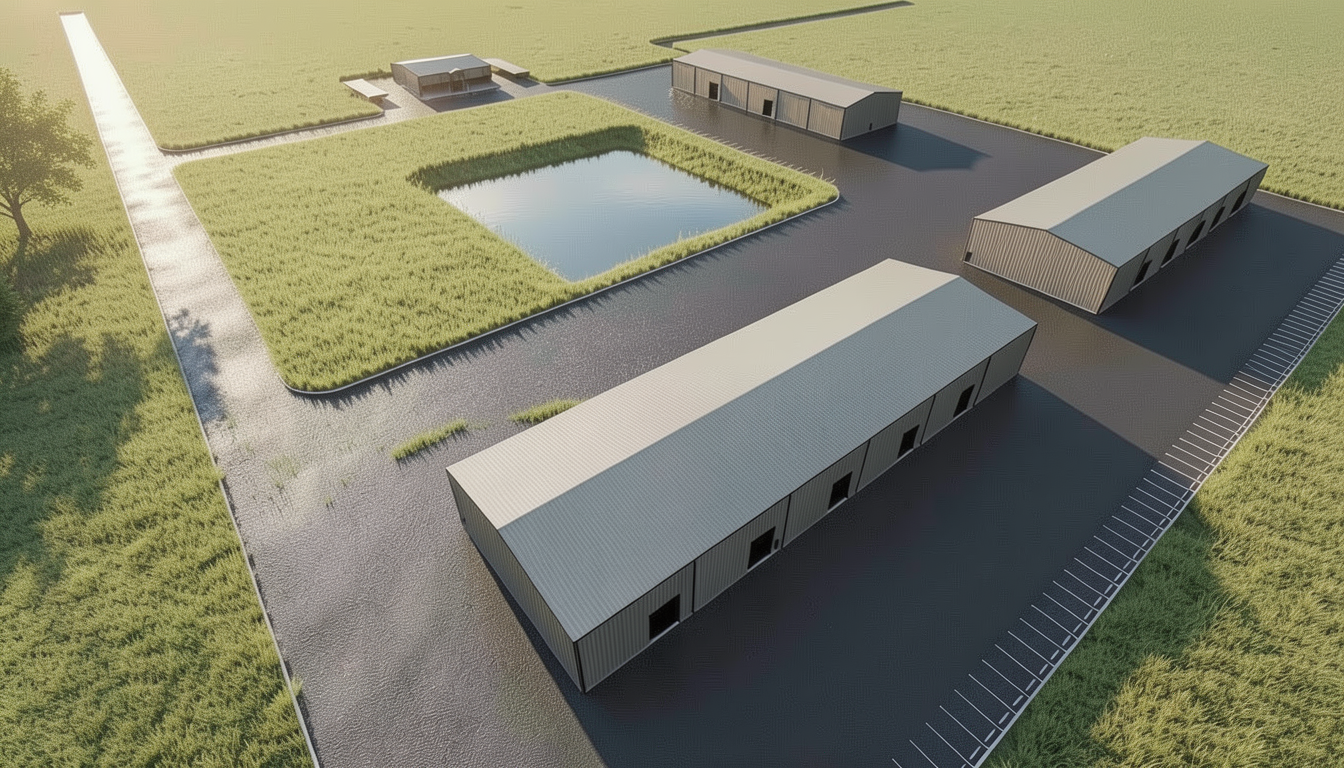 can you make a more deep green color add a middle sculpture that is metal and looks like a group of fish swimming in a circle can you add a few fish looking like they are half in and half out of the mosaic at the bottom of the pond add more sculptural fish at the center and more half in and out of the mosaic around make the green image look more like a mosaic with small tiles