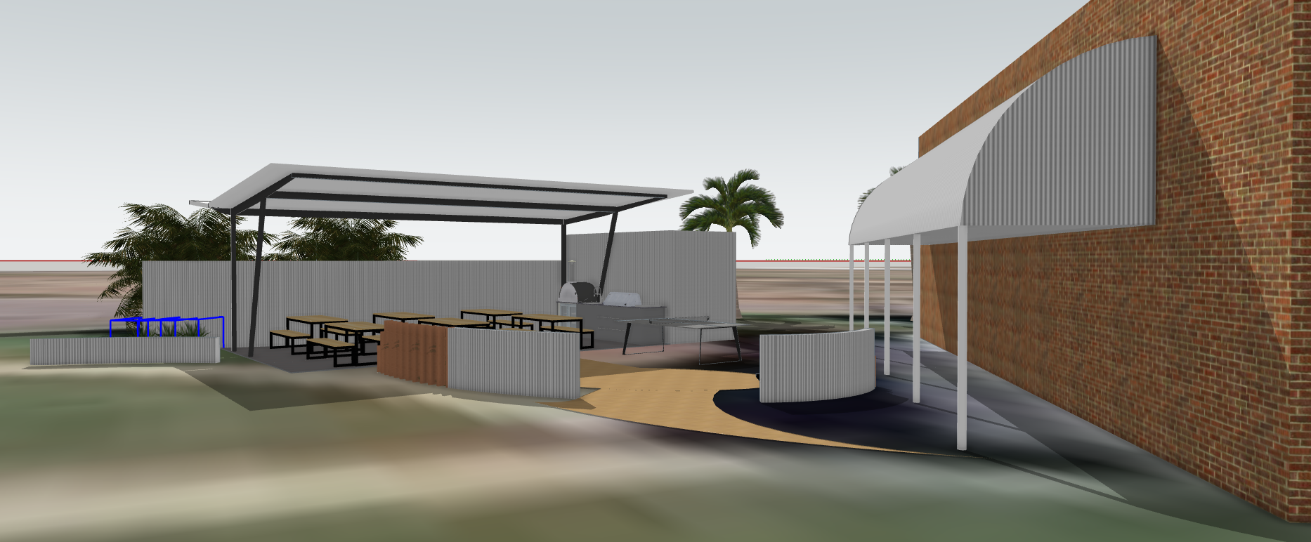 lanscaping grass sun people eating timber cladding under sofit