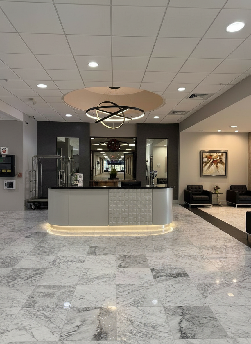 convert this floor plan into a architectural isometric 3d view of a full house show the space from an elevated angle with furniture walls and details visible use the attached floor plan image as a strict spatial and geometric reference generate a 3d architectural interior rendering of an ultra luxury walk in closet suite organized around a central open air courtyard scale ceiling height critical the space has a significantly elevated ceiling height reading as double height or more creating a grand airy architectural volume the closets are contained within a large open interior envelope not subdivided into standard height rooms the feeling should be closer to a gallery or pavilion than a conventional interior millwork concept the pink curved elements represent freestanding architectural millwork volumes not perimeter walls these millwork elements are full height but detached standing as sculptural objects within the larger space maintain the exact curved geometry and placement shown in plan the millwork does not touch the ceiling uniformly it reads as intentional architectural pieces within a taller volume islands the blue elements are freestanding islands at countertop height positioned exactly as drawn islands remain visually light and subordinate to the millwork volumes courtyard the central courtyard remains open to sky lushly planted with palms and greenery large glazed openings create a continuous visual connection between interior and exterior do not alter the plan no added walls no simplified curves no symmetry corrections respect circulation paths proportions and spacing exactly as shown lighting atmosphere abundant natural daylight from the courtyard indirect architectural lighting integrated into millwork soft shadows emphasizing scale height and curvature camera output wide angle interior perspective emphasizing height and spatial depth eye level camera photorealistic architectural visualization with a calm refined gallery like mood use the same furniture as shows on the plan do not change the orientation of the floorplan