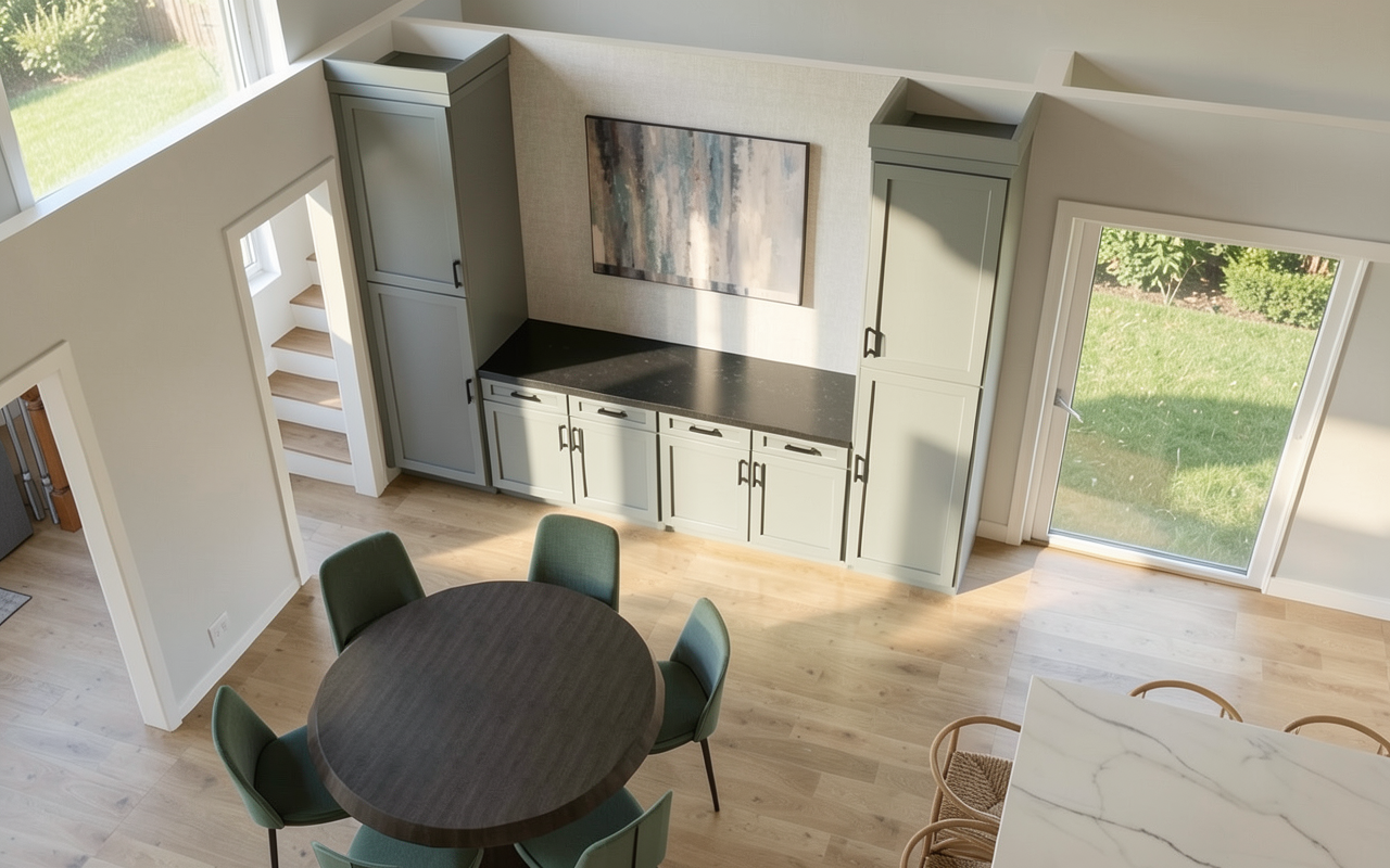 ultra realistic outdoor kitchen visualization featuring the evo collection the entire kitchen door fronts drawers side panels and back panels is made of nexbond panels in the color charcoal with a smooth painted finish and a subtle satin