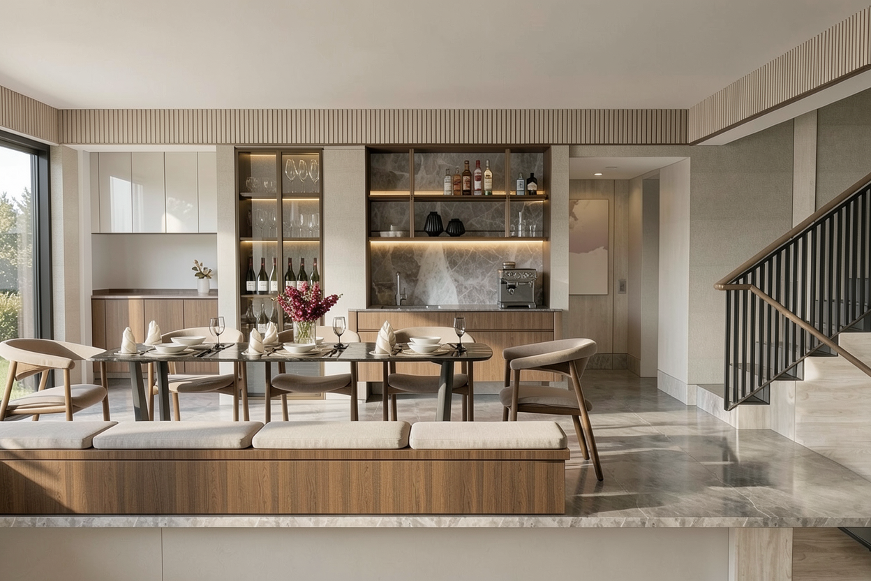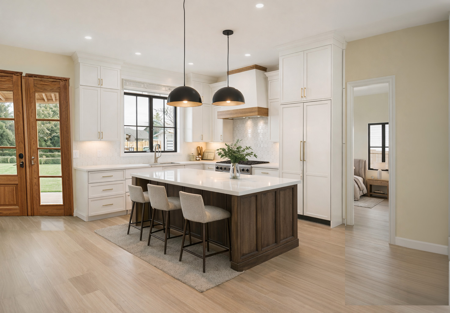 match island wood tone to front door