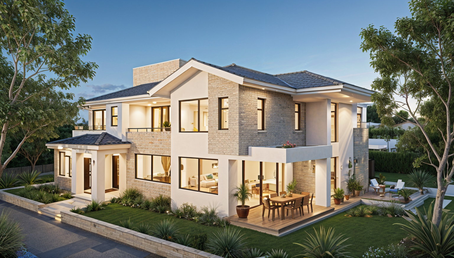 do not change white balconies and keep the white timber slats as they are