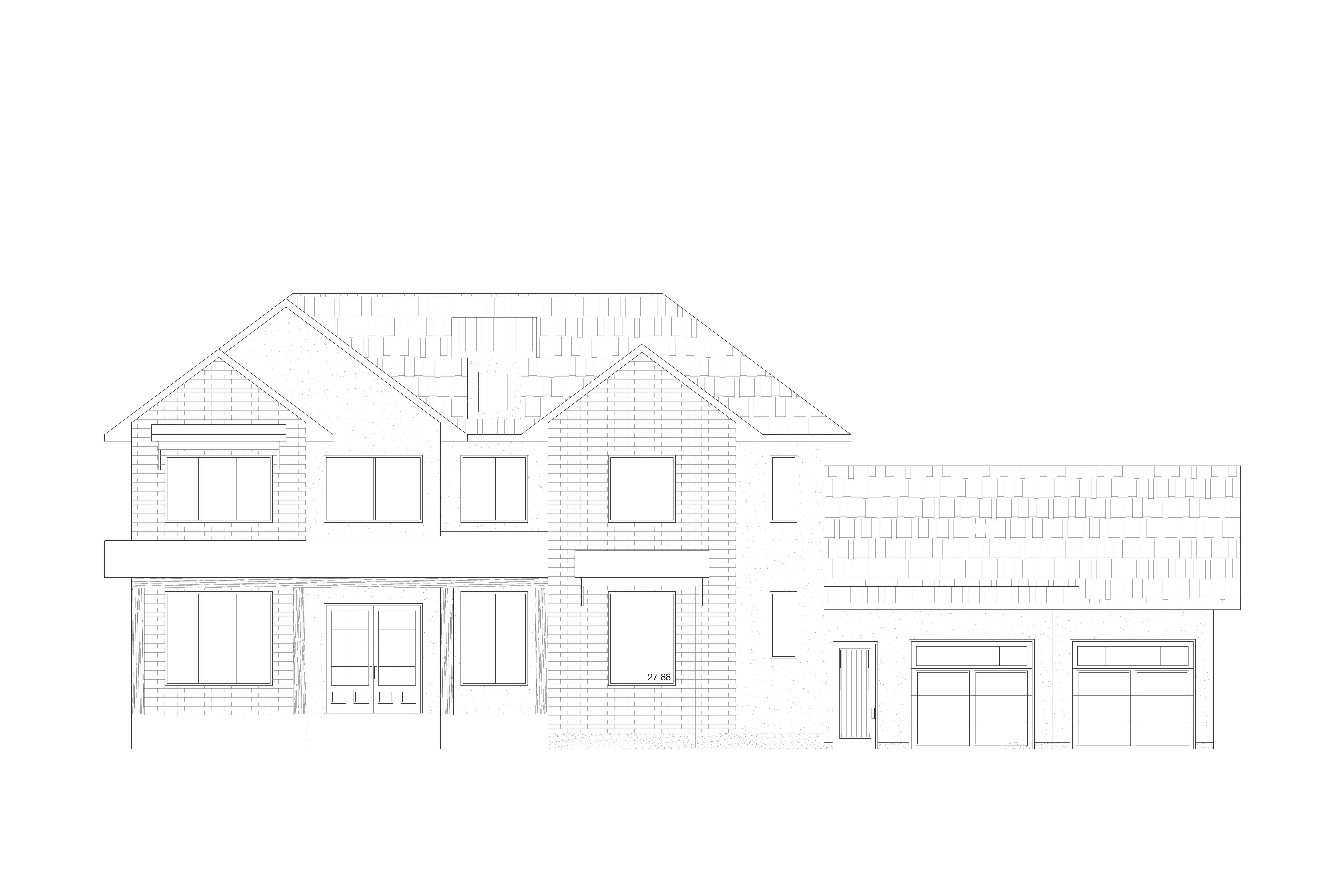create a realistic photo of this elevation black siding black windows doors black soffit fascia white stone black garage doors