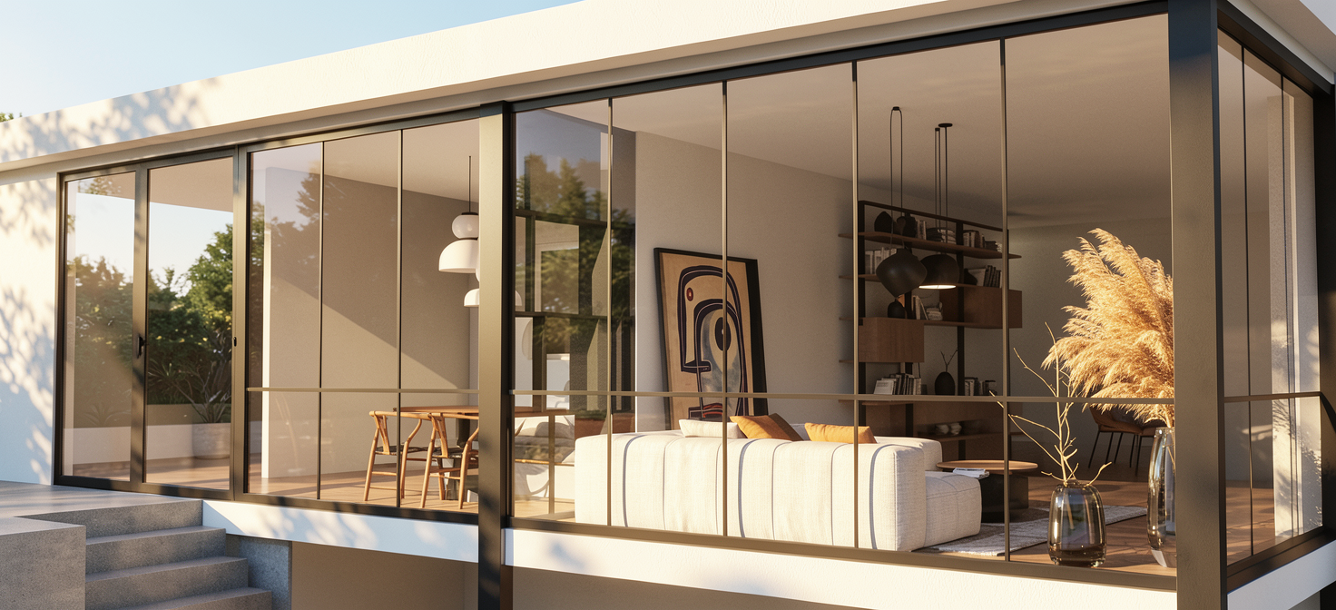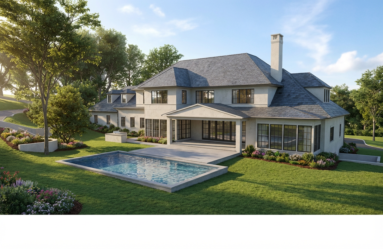 white rendered walls with wite window frames and slate grey roof mansard