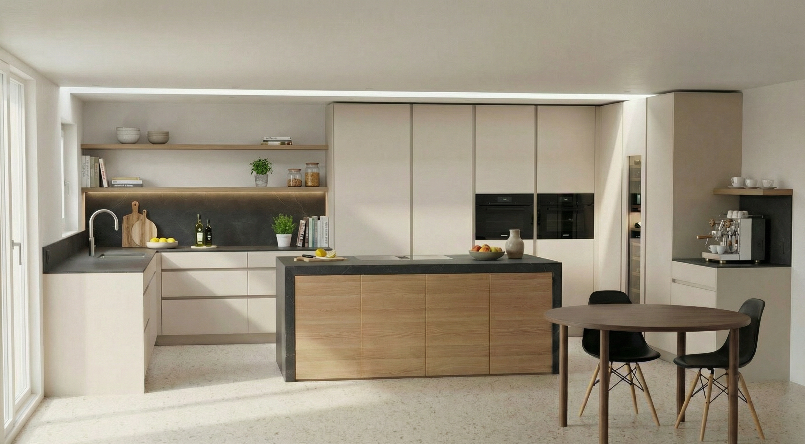 the rendered image should feature clean natural daylight as the dominant light source with soft diffused daylight entering through large openings the lighting should be well balanced avoiding excessive contrast or overexposure while ensuring that details remain clearly visible even in shaded areas the scene should also include 4000 kelvin interior artificial lighting the neutral white tone of this lighting should harmoniously complement the daylight the artificial light must not dominate the scene it should subtly enhance spatial depth and highlight material textures colors must remain accurate and natural with no color shift toward warmer or cooler tones the white balance should be neutral and the render should faithfully represent the original material finishes and shades the overall image should be clean sharp and photorealistic matching the original design as closely as possible in terms of composition proportions and material representation avoid excessive post processing oversaturation or stylization the goal is a realistic and authentic visual presentation correct the curtain color so it matches the original image make the wall color slightly darker brown adjust the curtain color do not change the color or material of the wall bars swedish ladder place decorative items on the bookshelf lighten the wall color slightly the bean bag should have a football soccer ball pattern the bed should have a solid colored bedding set with matching pillows adjust the curtain and the desk chair so they resemble the original image make the bedding cover more stylish and decorative