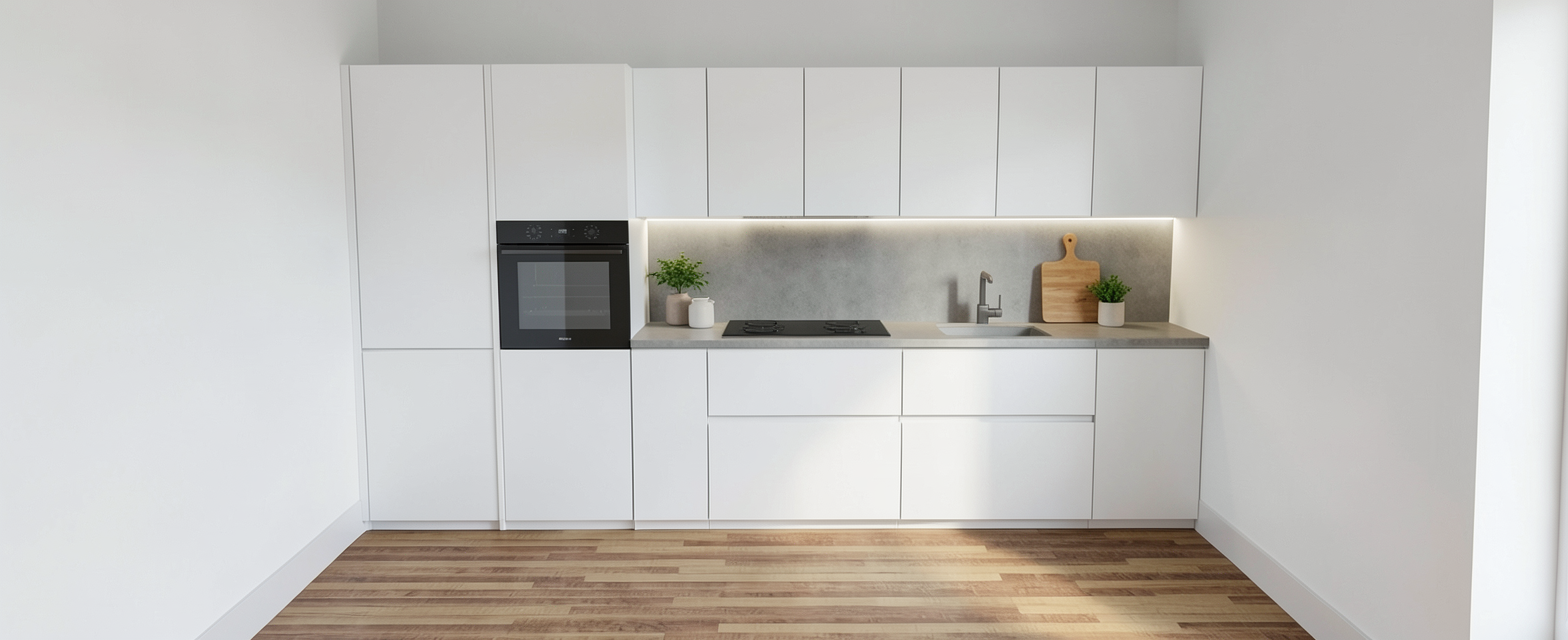 change the color of the white kitchen cabinets to a bluegrey color keep everything else the same