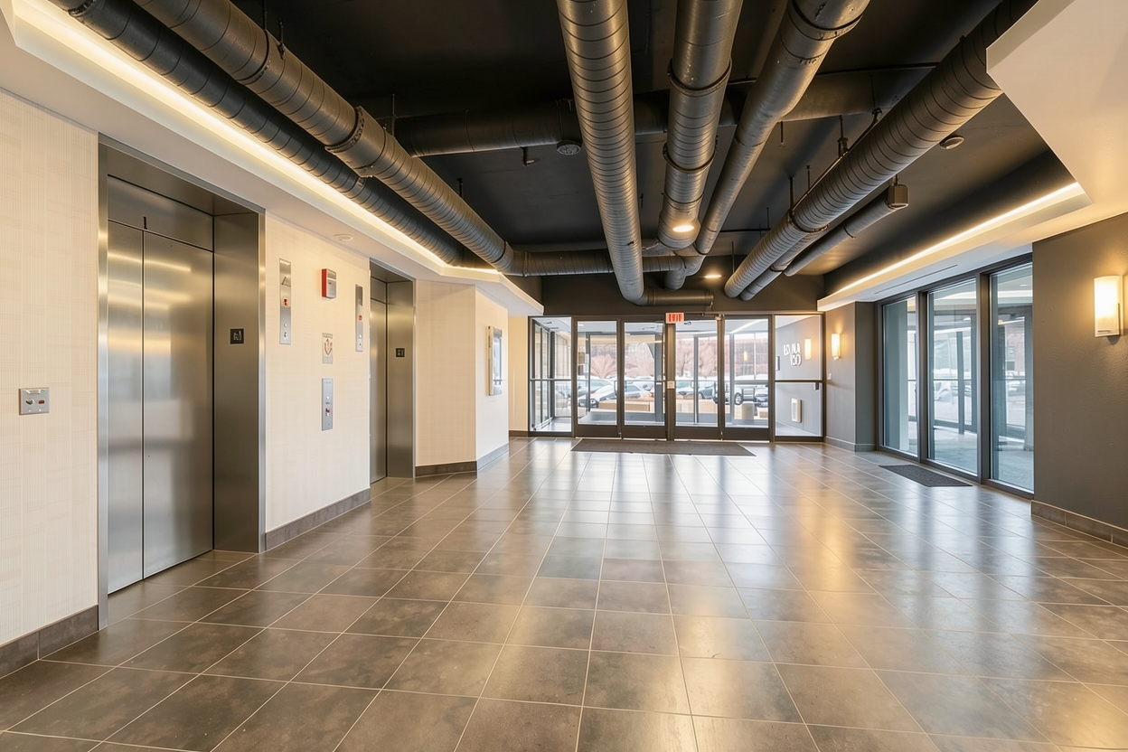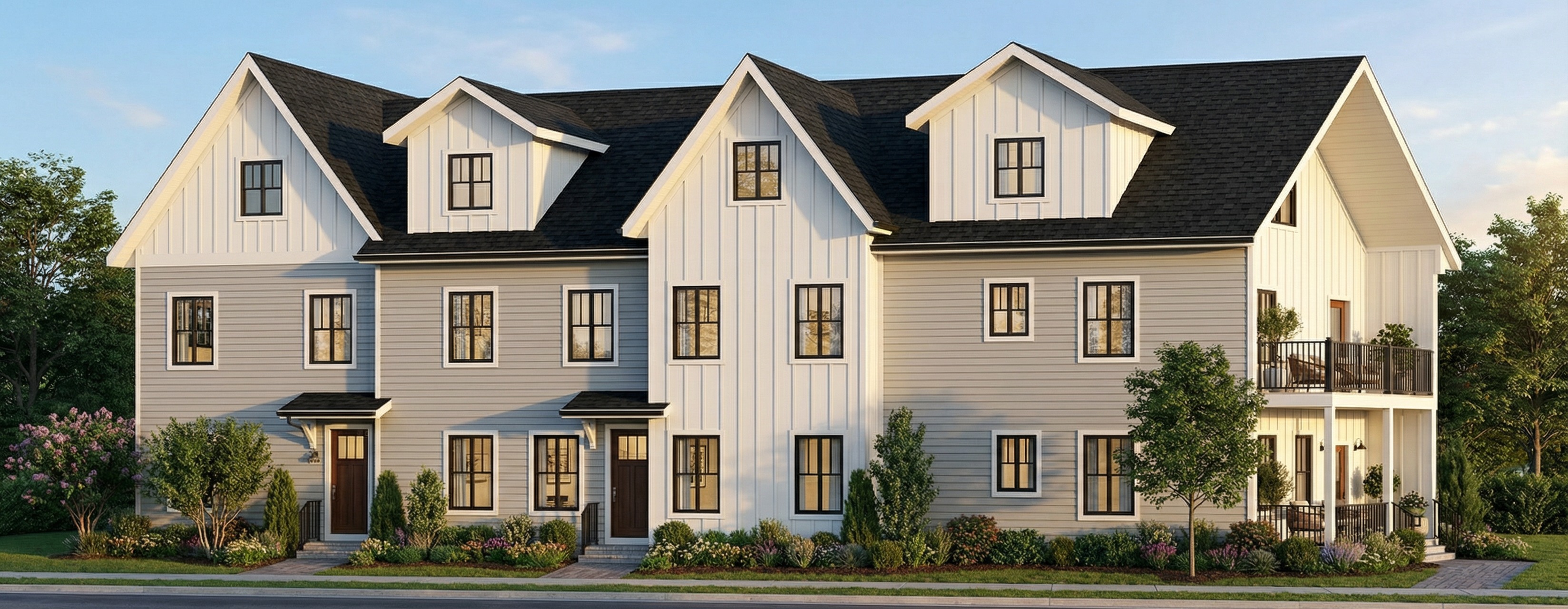 add minimal stone veneer exterior lighting set at dusk