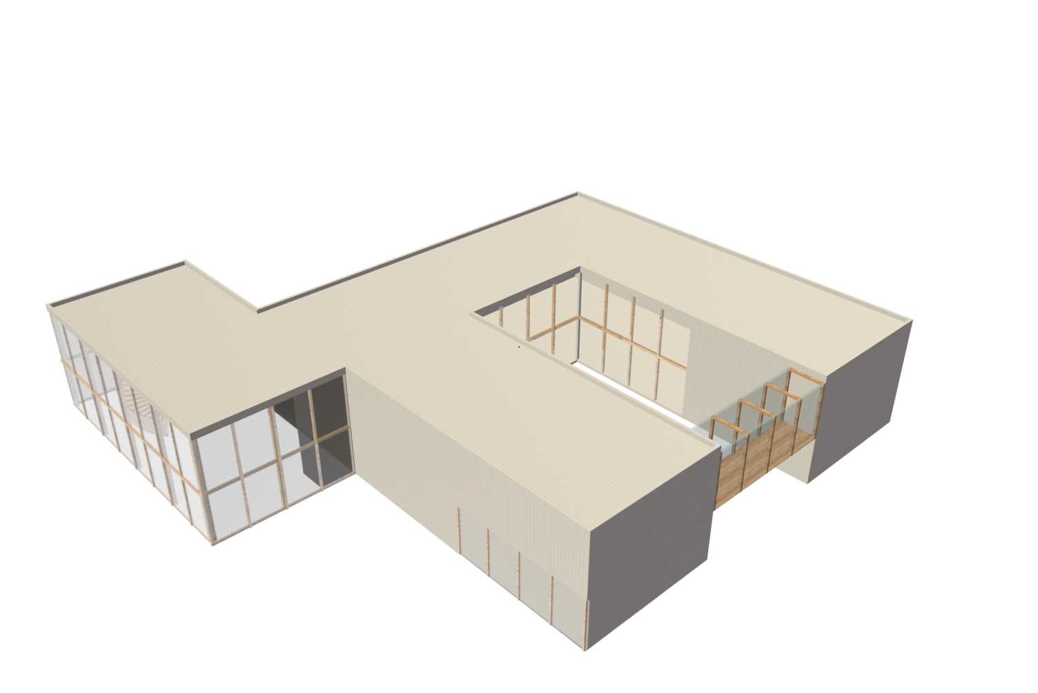 modern rooftop shot travertin stone facade trees and grass green rooftop architecture