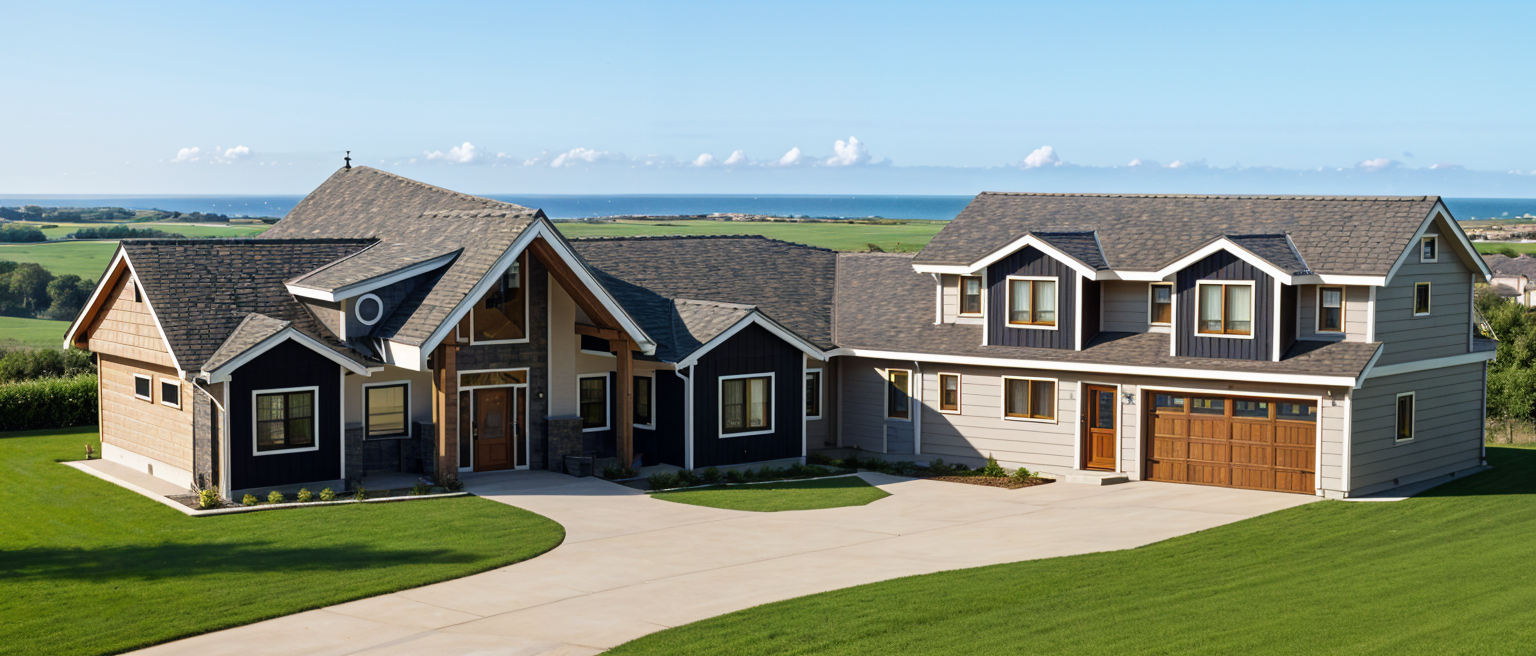 a manicured lawn layered flower beds low maintenance shrubs native plants stone pathway leading to the entrance