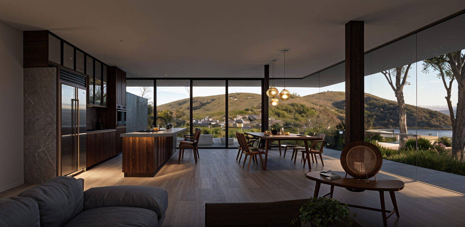 beautifully render a modern kitchen with light oak cabinets featuring sleek black handles the walls should be a soft white providing contrast to the polished grey marble backsplash with subtle veining the gas stove is a shiny stainless steel complementing the overall clean and contemporary aesthetic capture the warm ambiance with natural light flooding through a nearby window highlighting the herringbone patterned wooden floor in soft brown maintain an inviting and sophisticated atmosphere throughout the space