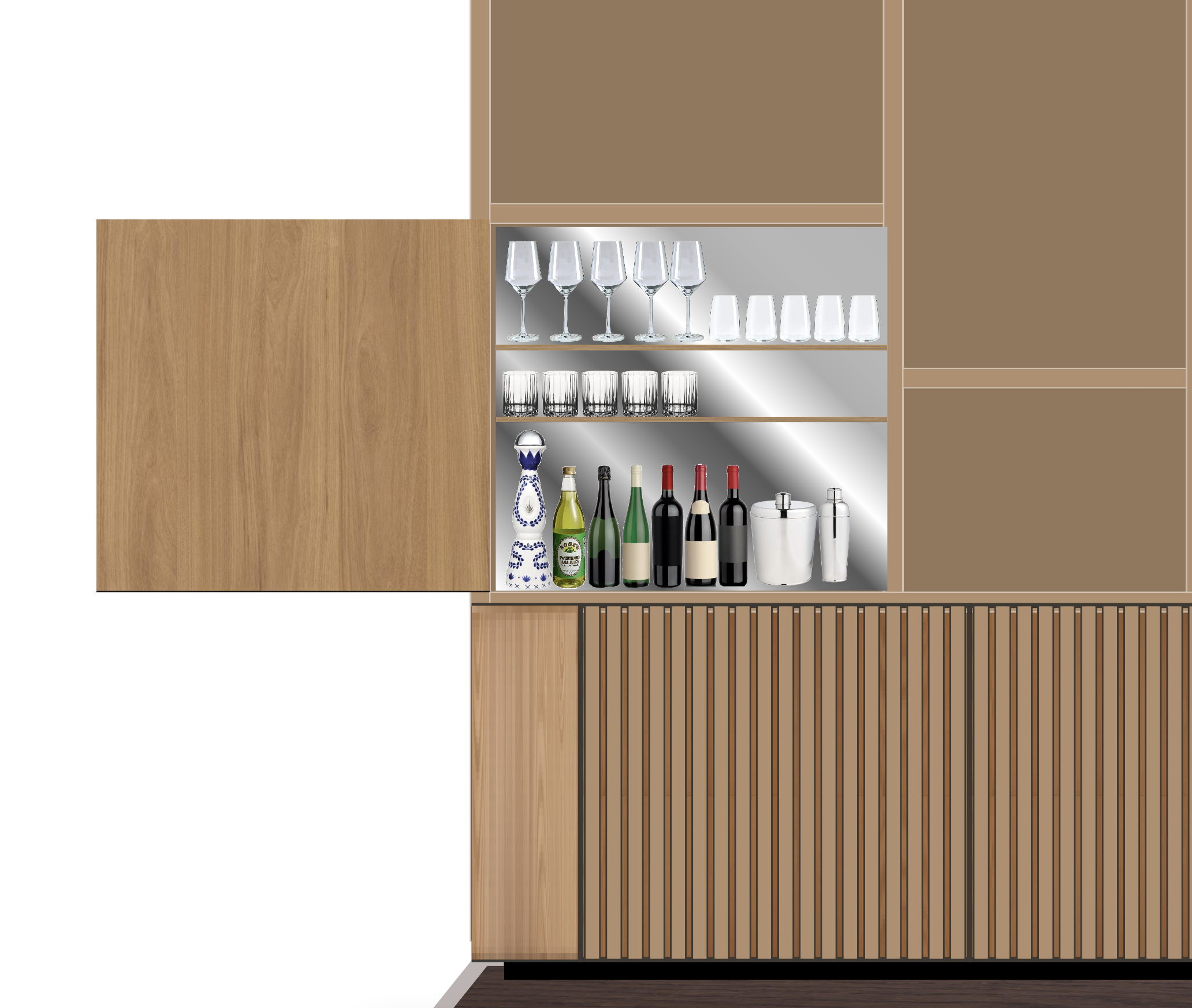 keep design the same show top down lights on the inside of the bar cabinet