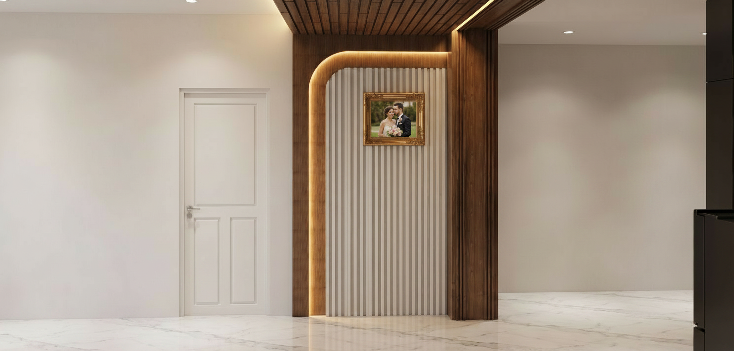 tambahkan indirect light di panel melengkung putih