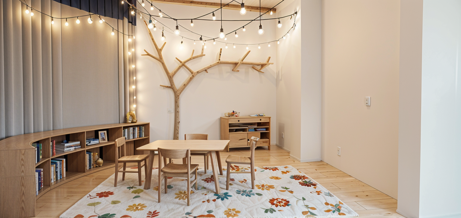 crea un render con esta recepci n para una academia de idiomas estilo montessori a ade puntos e luz en el techo